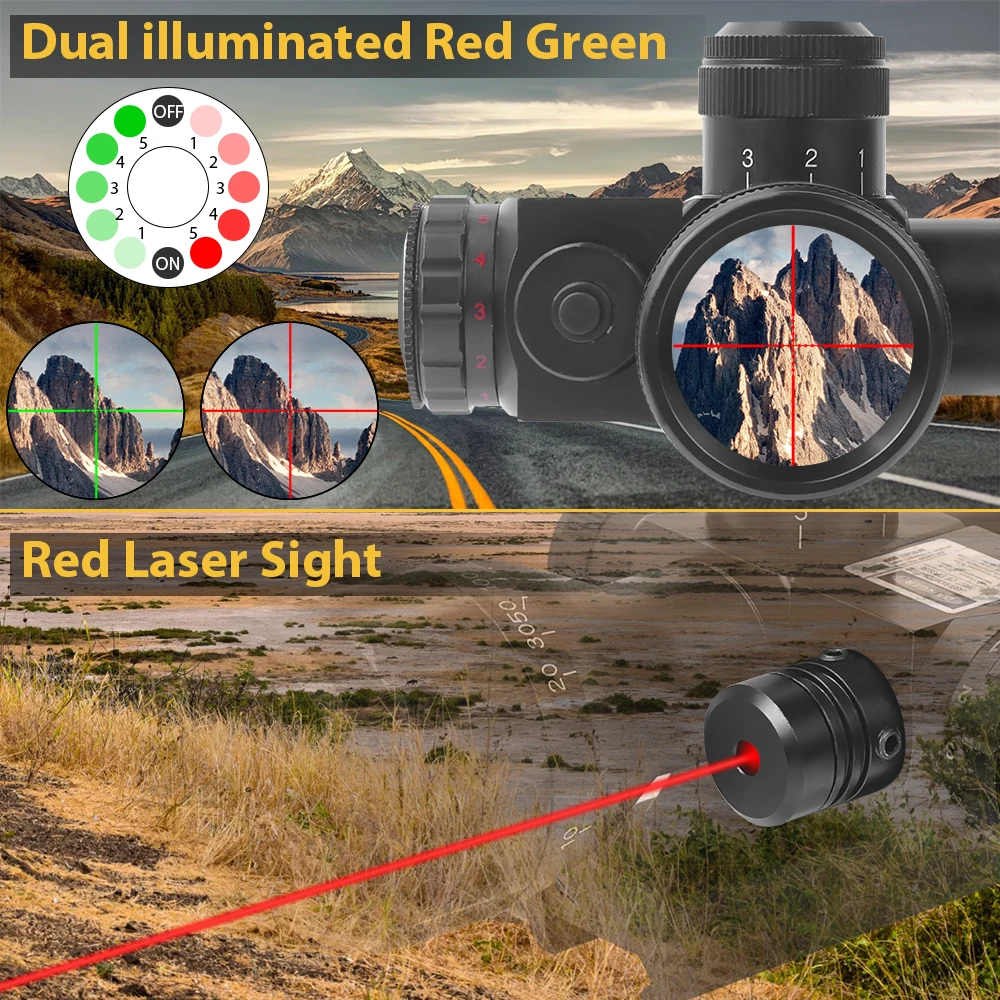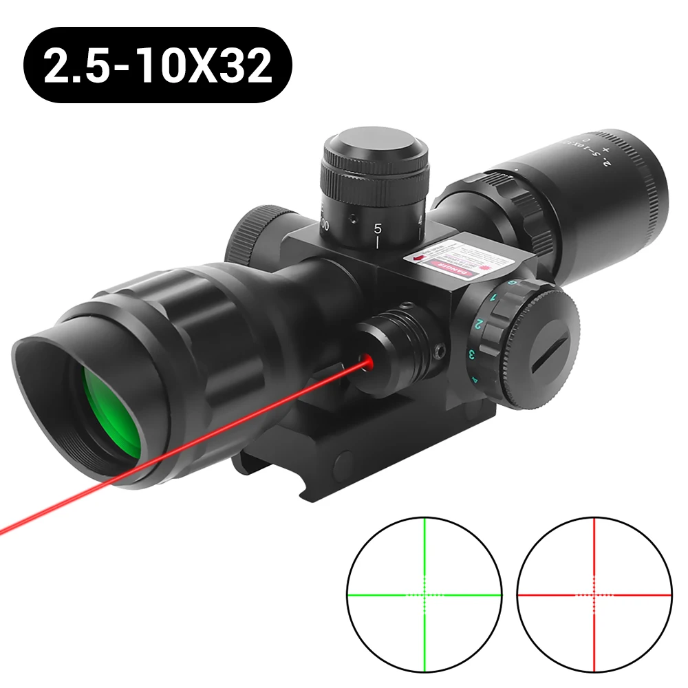 2,5-10x32 mira telescópica láser de punto rojo táctico rojo verde doble iluminado Mil-DOT Rifle mira óptica de caza mira de aire accesorios de tiro