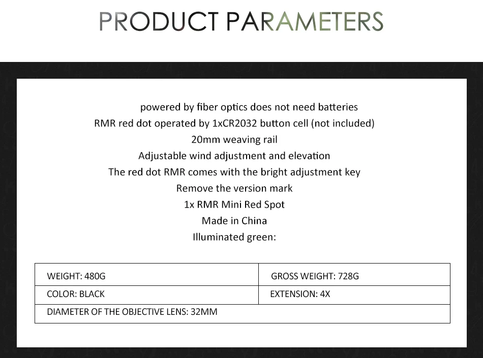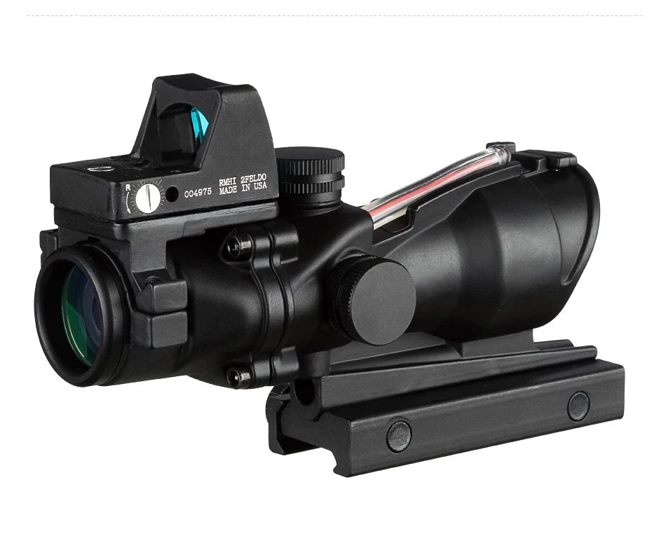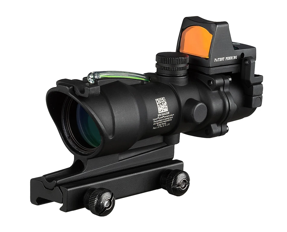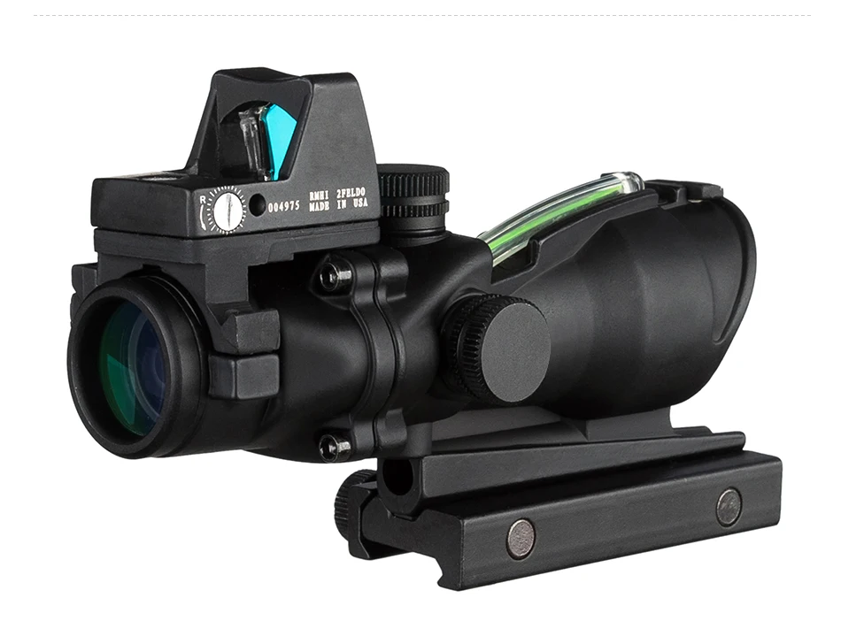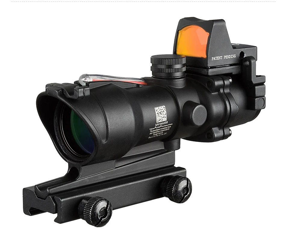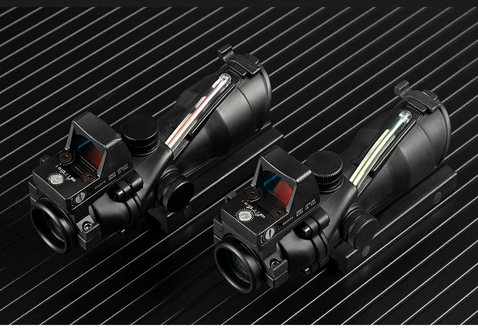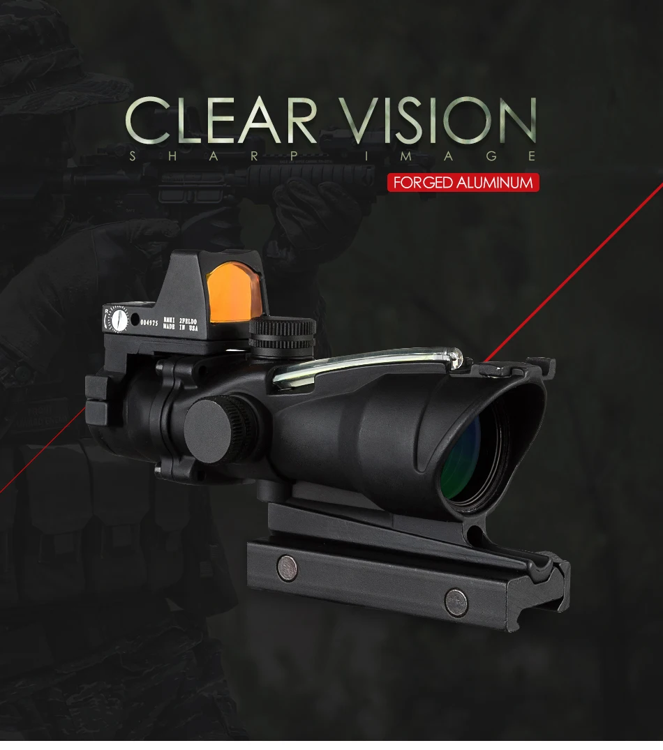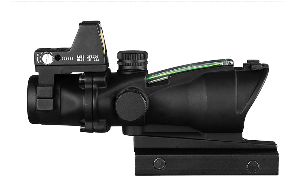 Mira telescópica óptica 4x32, retícula roja Cahevron, fibra óptica iluminada verde con Mini mira de punto rojo