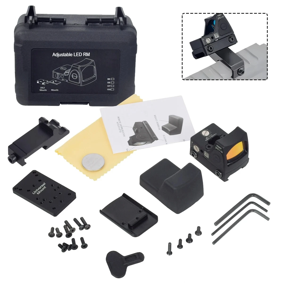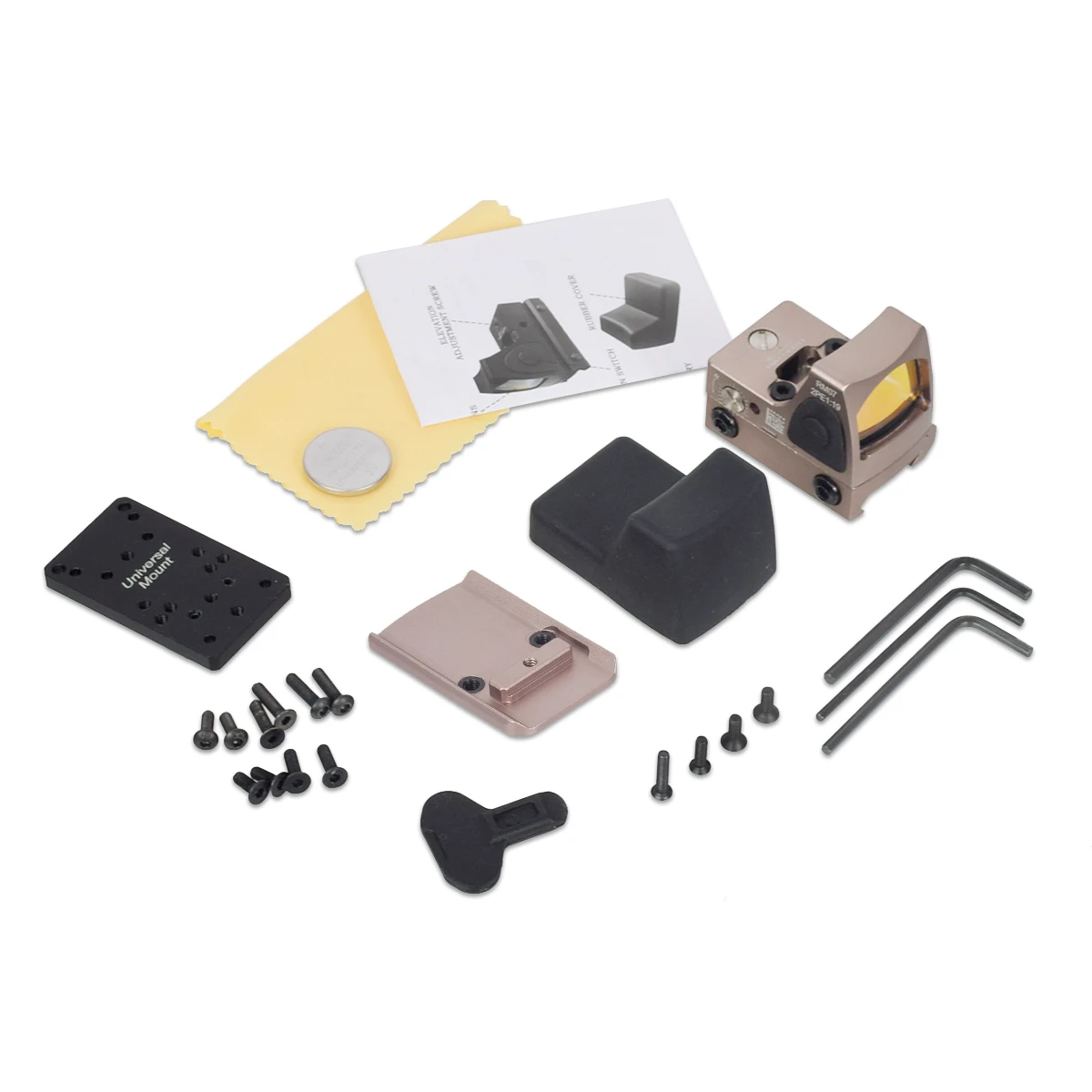 Ampliación: 1xCompensador de caída de bala: NoLongitud (pulg.) : 45 mmFuente de iluminación LEDPatrón de retícula: punto de 3,25 MOAColor del retícula diurna: rojoColor del retícula nocturno: rojoConcepto de puntería Bindon: NoAjuste a 100 yardas (clices/in): 1,0Material de la carcasa: Aluminio forjadoNota: Baterías 1 batería de litio xCR20323V