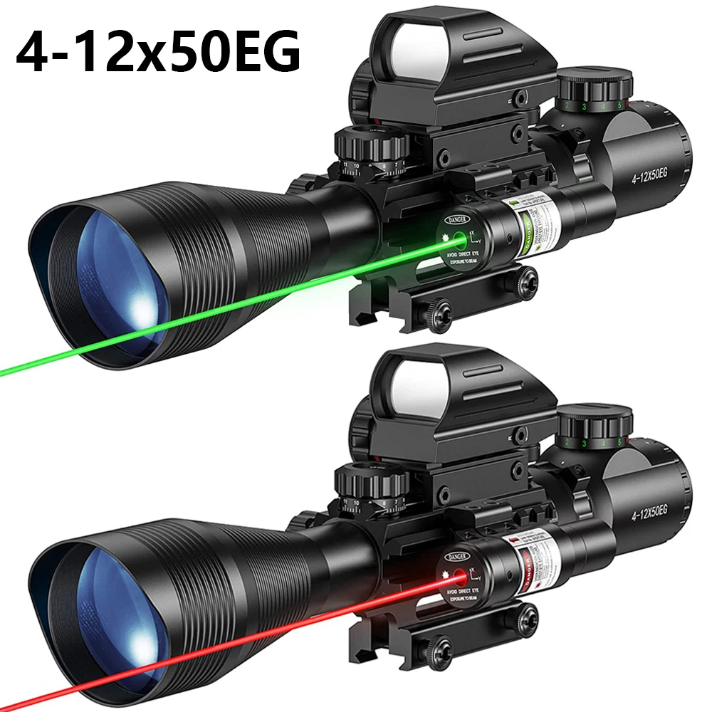 Mira telescópica óptica táctica 4-12x50EG con mira láser roja/verde telescopios de caza combinados iluminados en rojo y verde 4 retícula holográfica mira de punto verde rojo