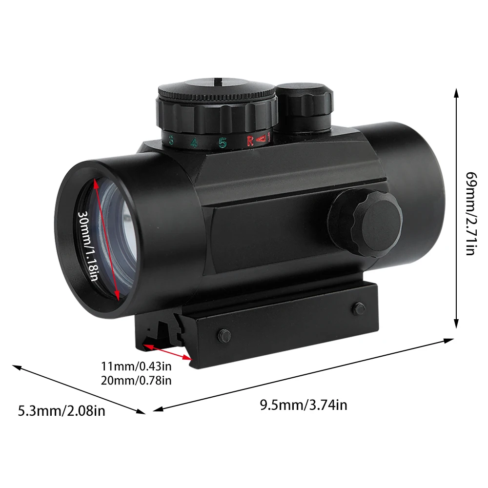 Mira telescópica de punto verde rojo de 1x30mm para ballesta, óptica de caza, mira telescópica, mira telescópica para Rifle, mira colimadora, montada en riel de 20mm