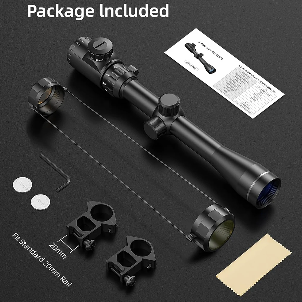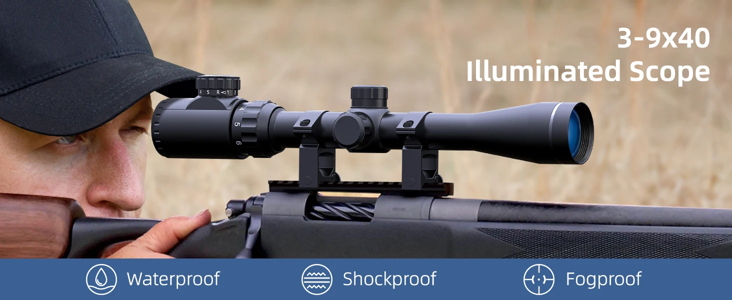 1.【Convenient & Sturdy】 The 3-9x40 rifle scope is made from high-strength aluminum alloy. Completely sealed and nitrogen-filled makes it fog and rainproof, working great in all weather conditions. The ocular is built with a dioptric adjustment lens that can provide nearsighted and farsighted users with a clear viewfinder image without the use of eyeglasses.