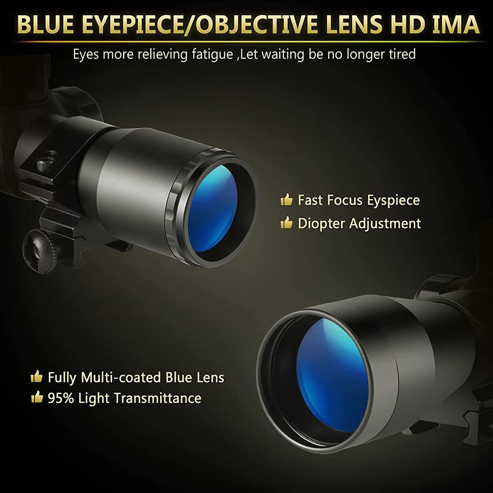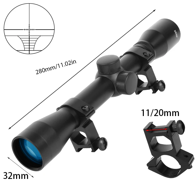 - El visor del rifle con montaje libre, ideal para la caza, el retícula lleno de nitrógeno garantiza un excelente rendimiento a prueba de agua y niebla.