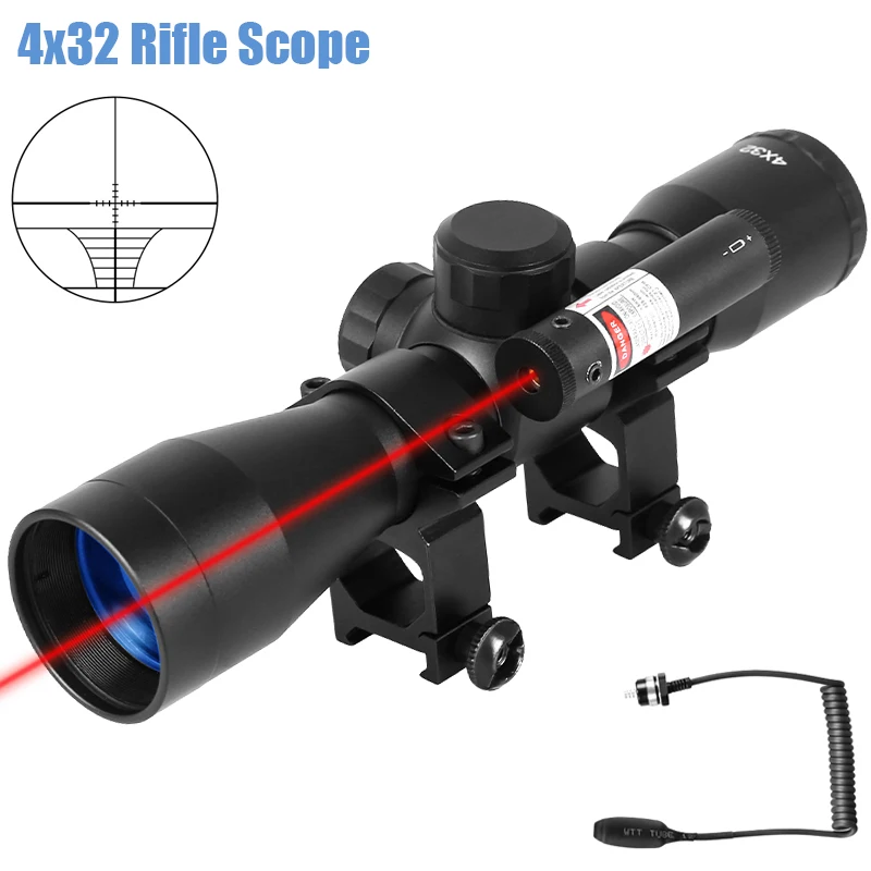 - Escopos de rifle de aire 4x32 con dioptrías de bloqueo, el largo alcance le brindan la máxima claridad. Valor de viento y elevación del clic: 1/4 MOA 1/4" a 100 yardas.