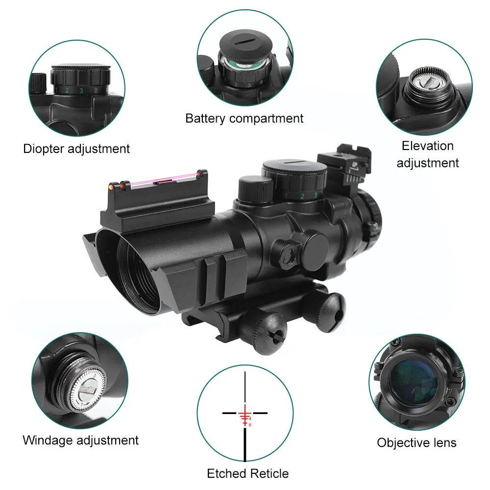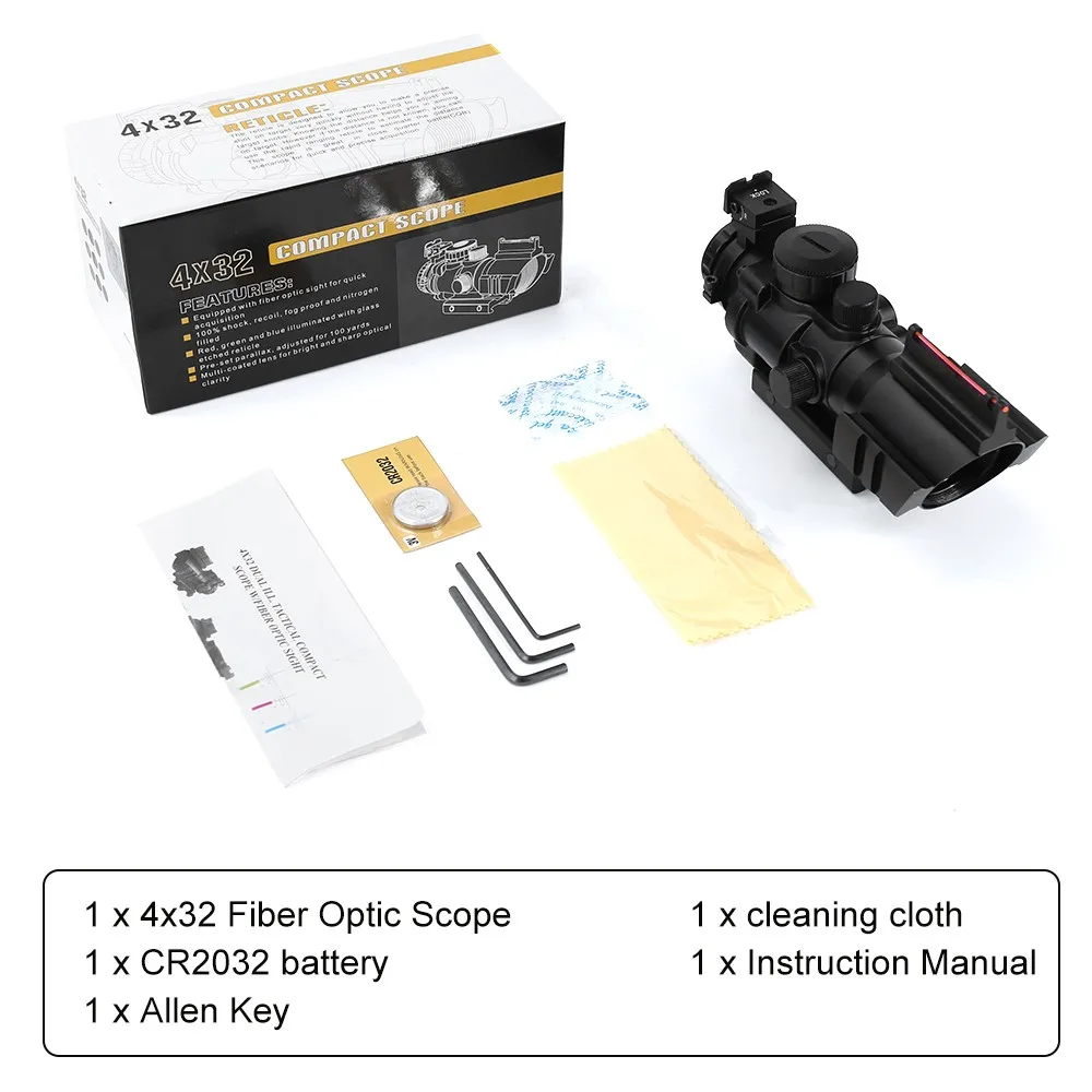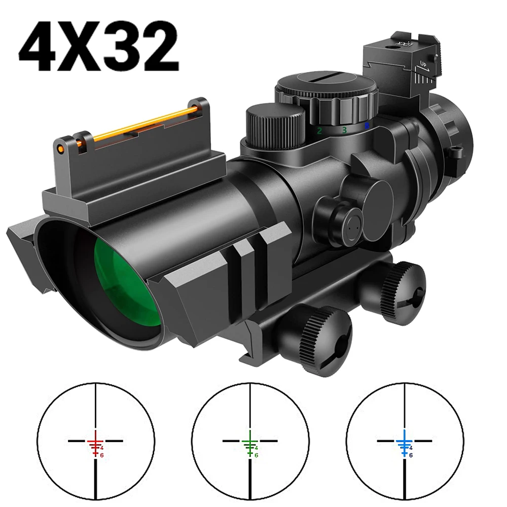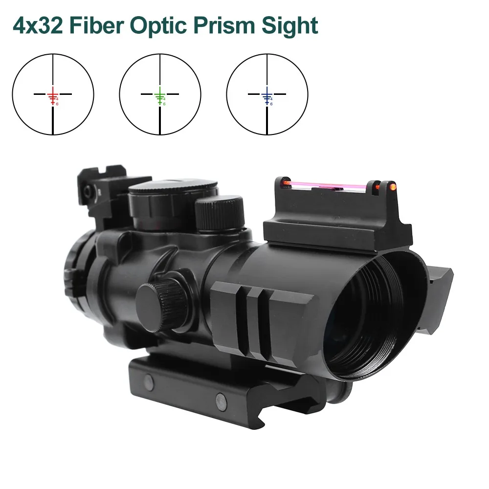Mira telescópica táctica para Rifle 4x32, mira óptica reflex, mira de hierro delantera y trasera de fibra, mira óptica de caza, mira prisma para 20mm