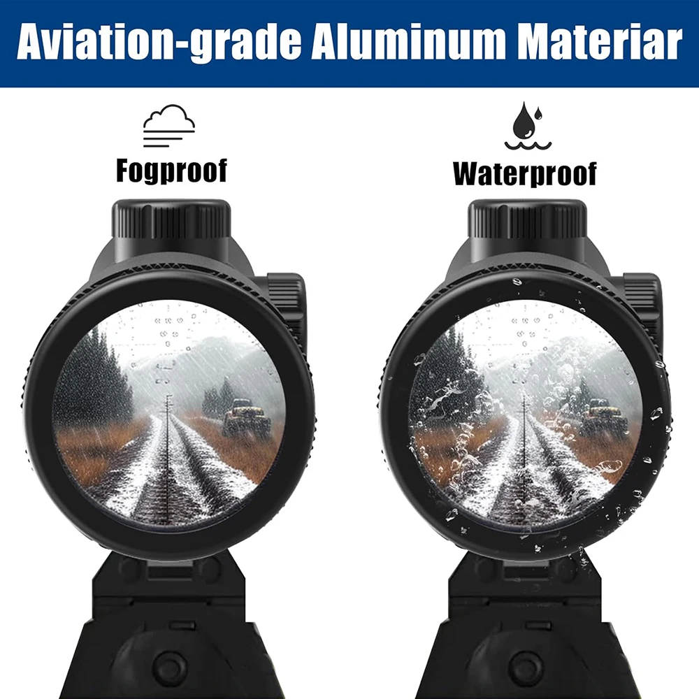 El cuerpo del visor del rifle está construido con una aleación de aluminio duradera de calidad aeronáutica, es resistente a los golpes y adecuado para la caza.El diseño de flotamiento libre de la mira del rifle proporciona un excelente rendimiento a prueba de agua y niebla con sellos de junta tórica y llenado de nitrógeno.