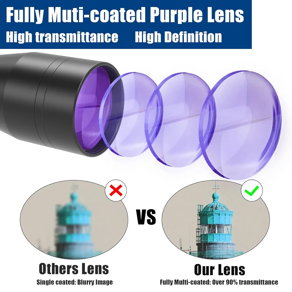 El revestimiento morado del visor mejora significativamente su transmisión de luz, lo que resulta en una mayor claridad y brillo de la imagen, especialmente en condiciones de poca luz.