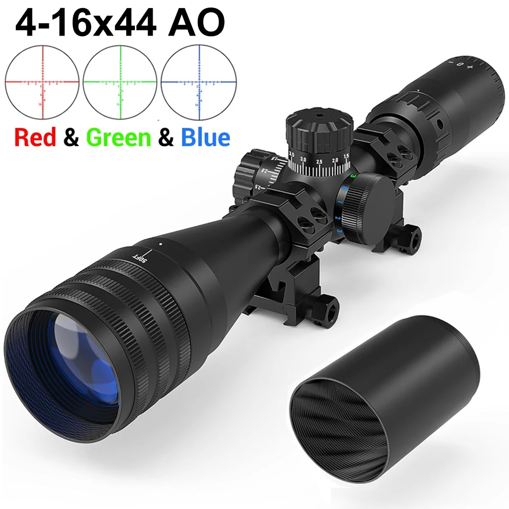 4-16x44 AO Rifle de caza SFP RGB iluminación Riflescope Mil-dot Retícula Delantera Parallax Ajuste Óptica