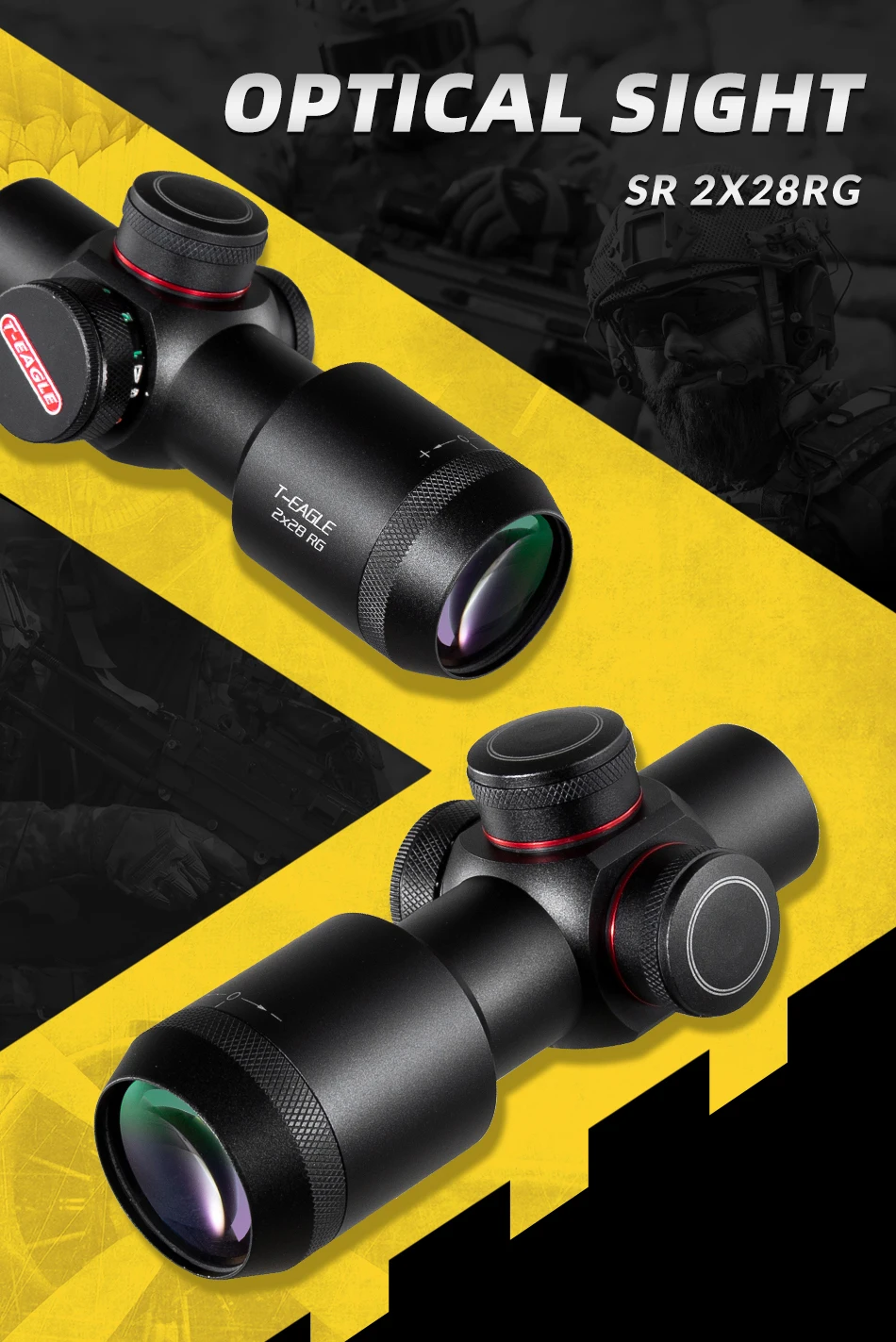 Mira telescópica para Rifle de caza, visor óptico de enfoque lateral, equipo de francotirador, Rifles de largo alcance, 2x28 EG