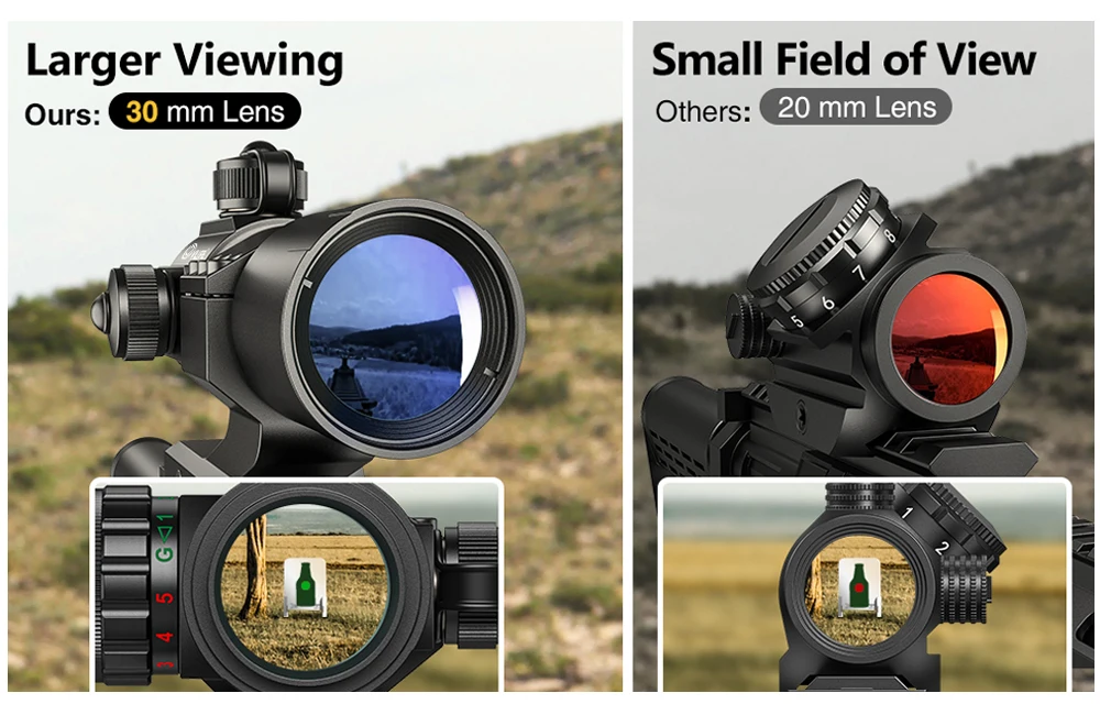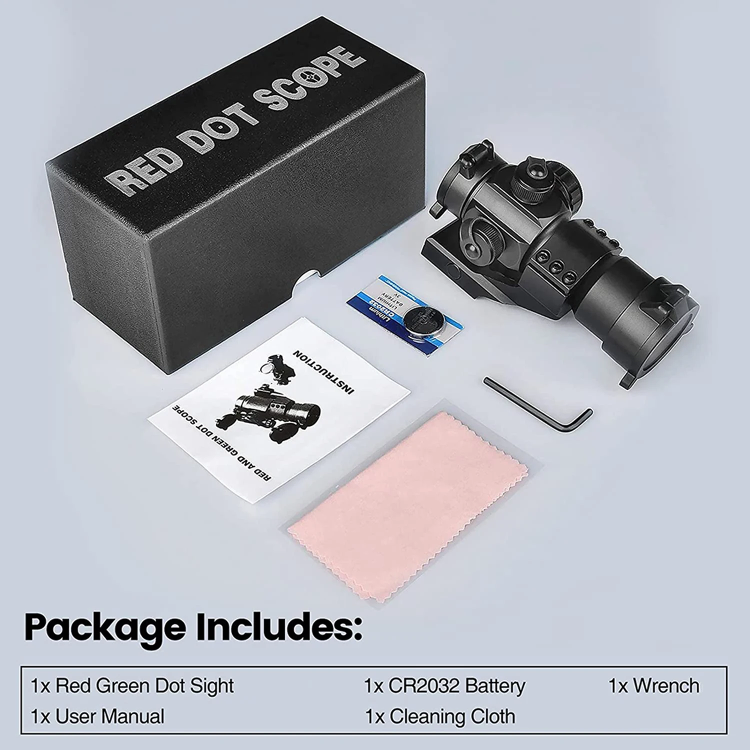 [Brillo ajustable de Punto Rojo]: el alcance de punto rojo con 5 niveles de brillo se ajusta fácilmente a las condiciones cambiantes. Mira de punto rojo o verde, puede seleccionar un tipo diferente para satisfacer sus necesidades