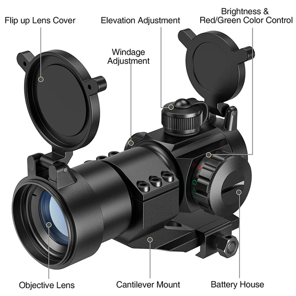 Mira de punto rojo de 1x30mm, mira de reflejo táctico, mira de punto verde rojo, mira para Rifle de caza para montaje en voladizo de 20mm