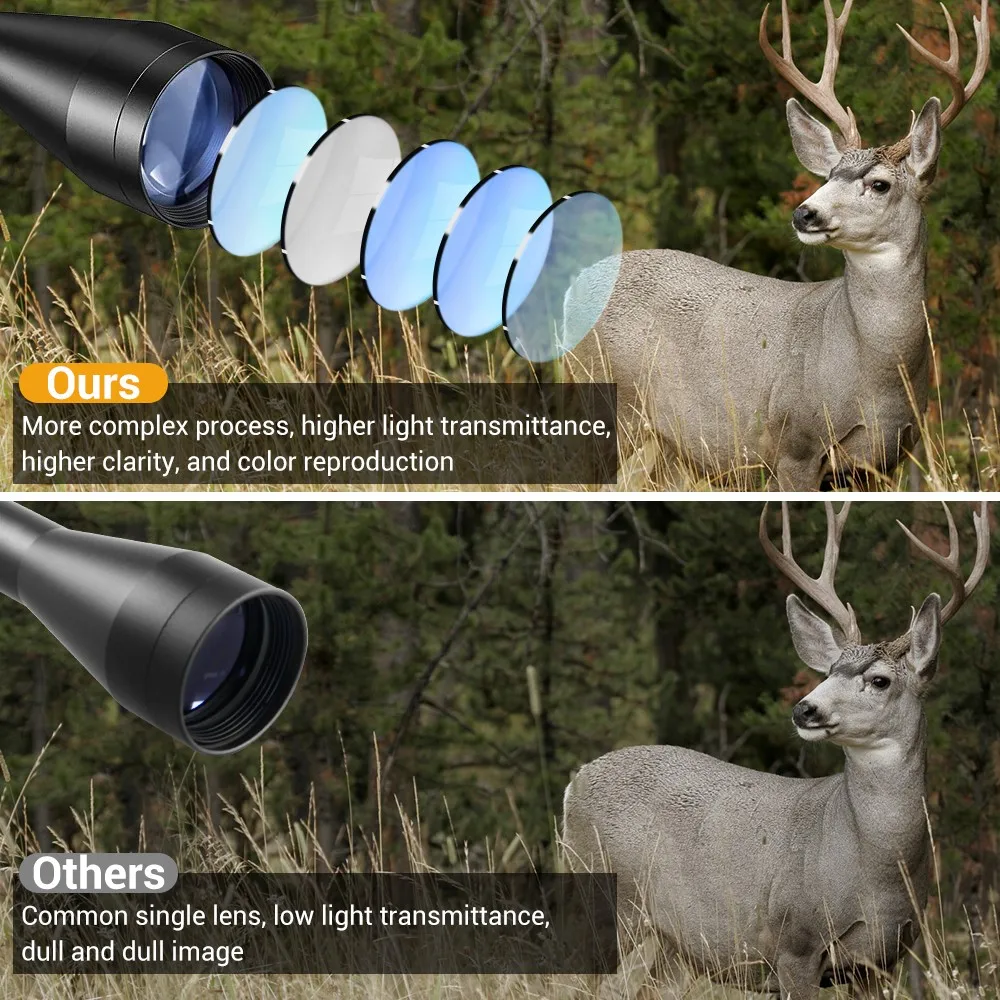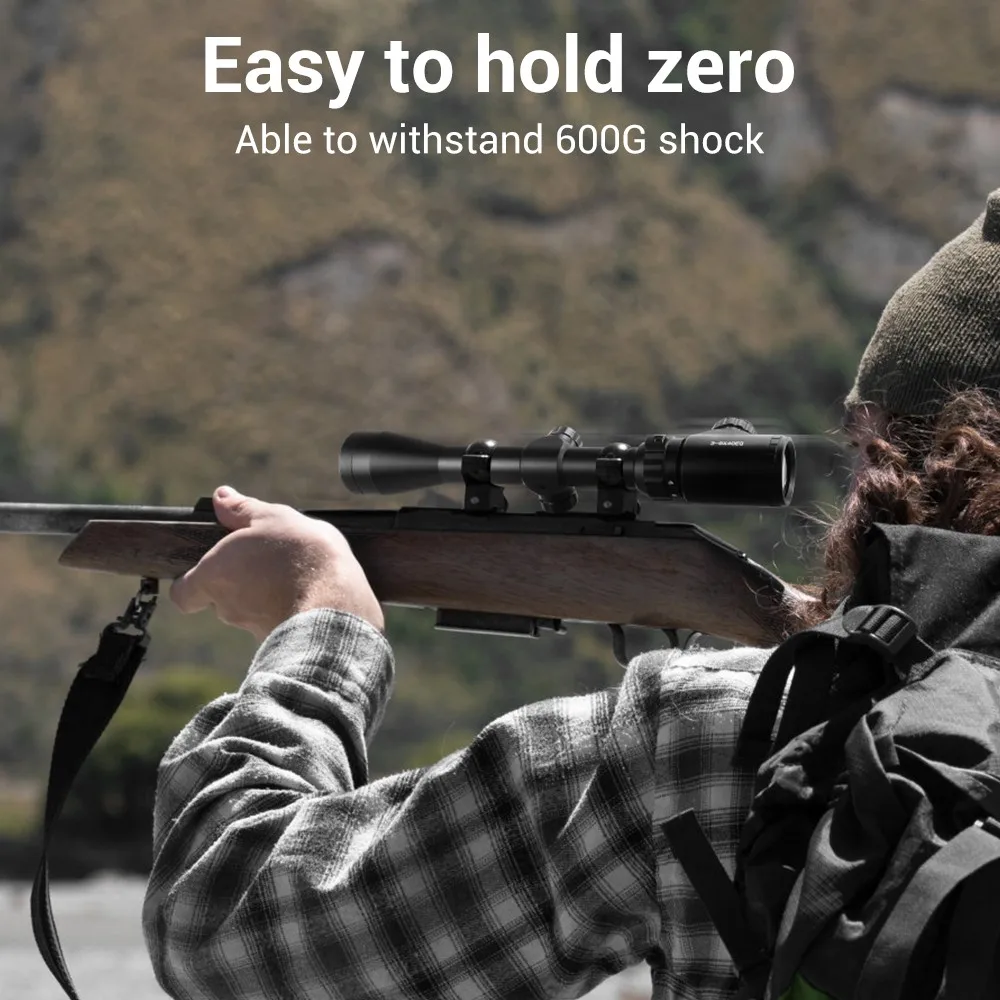- Alcance de rifle para caza, con cuerpo de aluminio de calidad aeronáutica, más resistente a impactos y ligero.El sellado con junta tórica y el retícula lleno de nitrógeno garantizan un excelente rendimiento a prueba de agua y niebla.