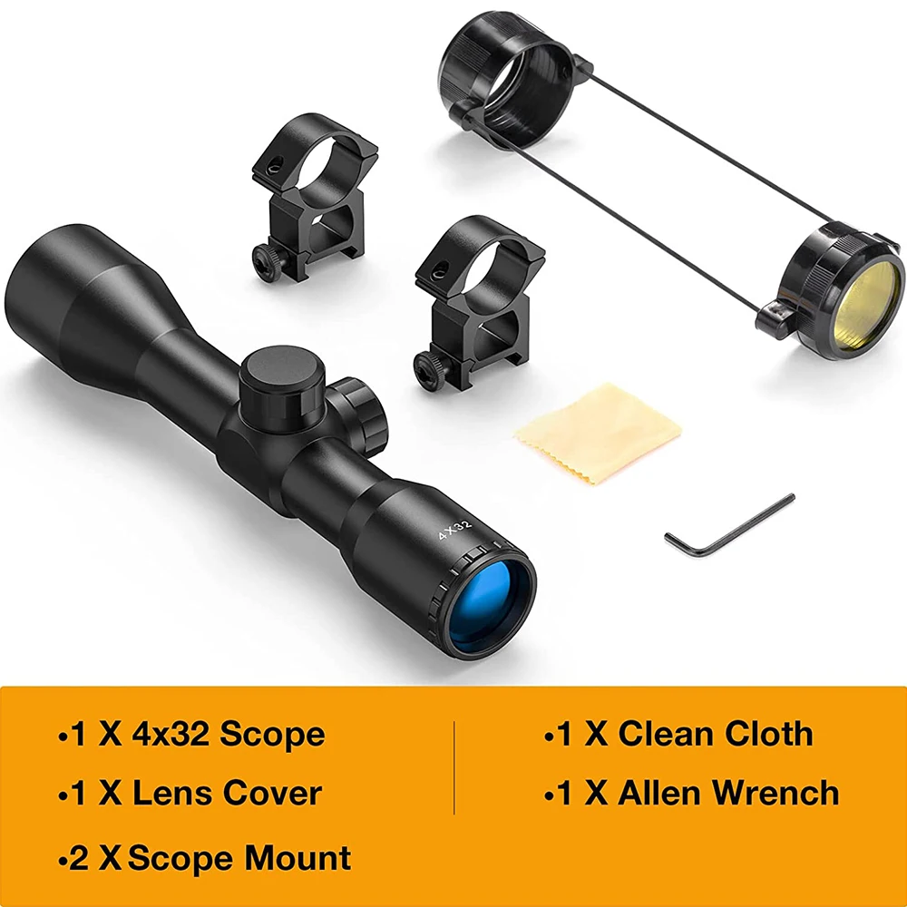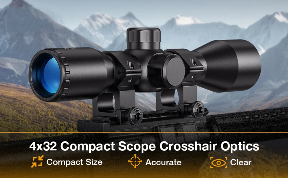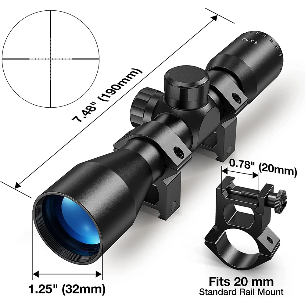 Mira telescópica de rifle compacta 4x32, óptica cruzada, mira telescópica de caza, mira telescópica para riel Picatinny de 11/20mm