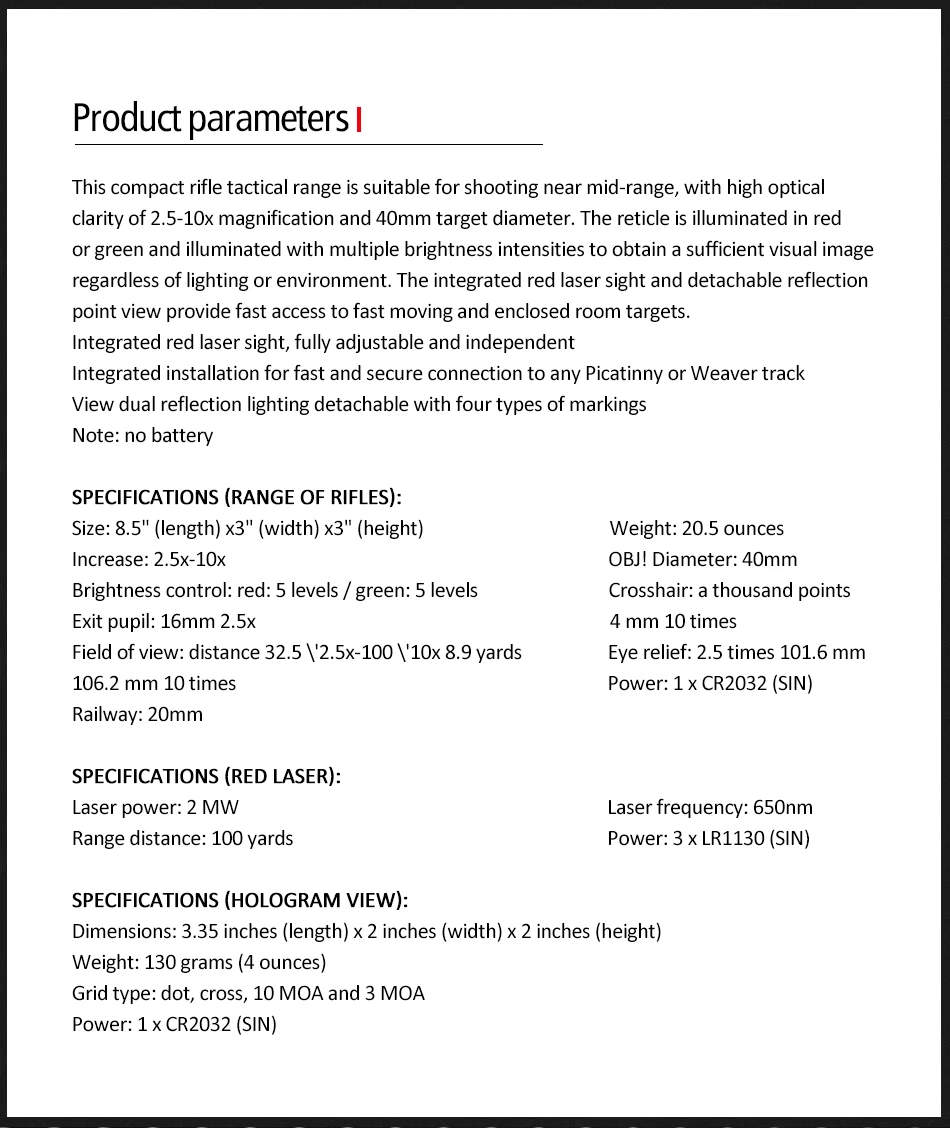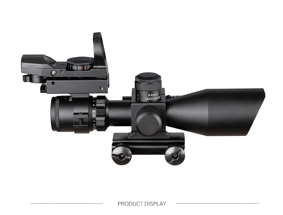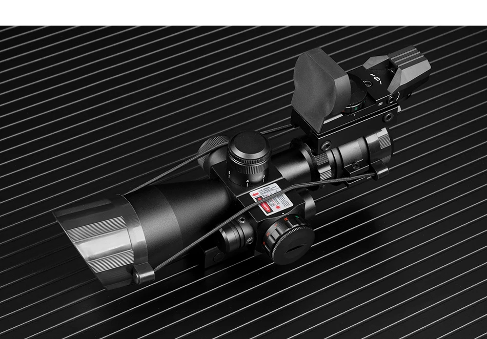 Mira telescópica para Rifle táctica R, mira telescópica iluminada para caza con láser + traje combinado de punto rojo reflejo, buena calidad, 2,5-10x40