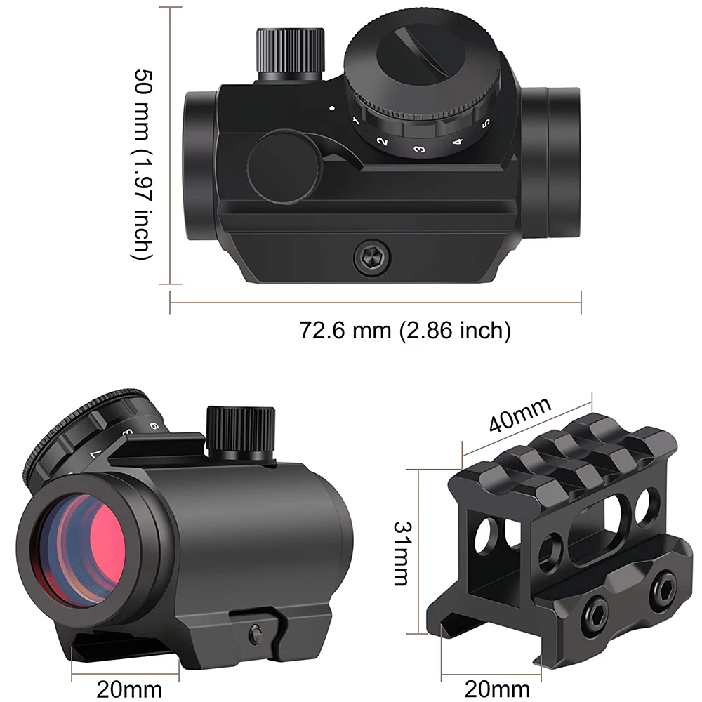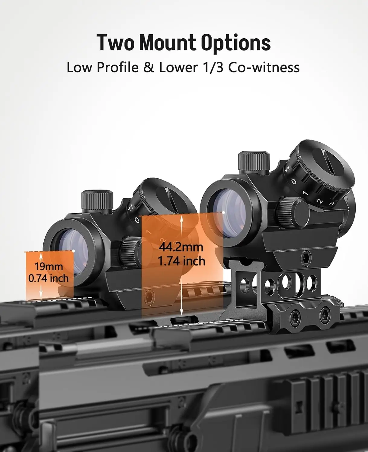 * Esta mira refleja viene con un elevador de montaje bajo y un soporte elevador de co-título absoluto, lo que le otorga su funcionalidad en cualquier plataforma.