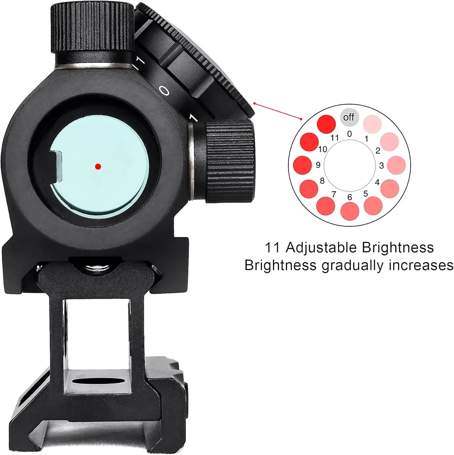 * Nuestras miras de punto rojo proporcionan 11 configuraciones de brillo para una visibilidad óptima en cualquier condición climática, ajustando el brillo para adaptarse a diferentes condiciones de iluminación.