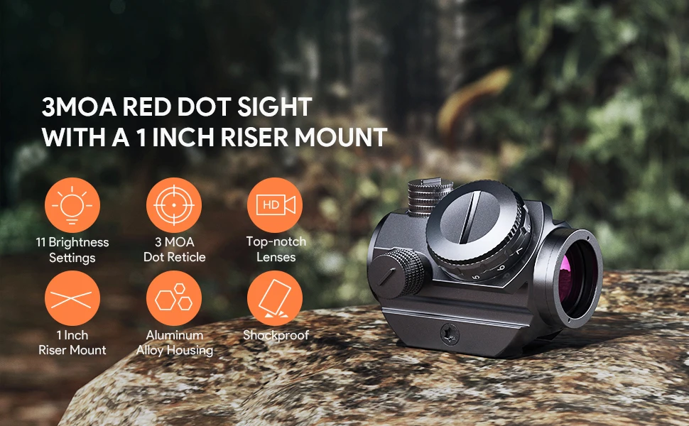 * La mira de punto rojo mejorada de 3-4 MOA con alivio ocular ilimitado permite adquirir rápidamente el objetivo y mantener suficiente refinamiento, lo que permite disparos precisos con ambos ojos abiertos.