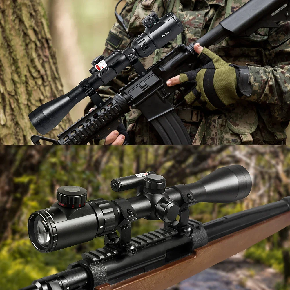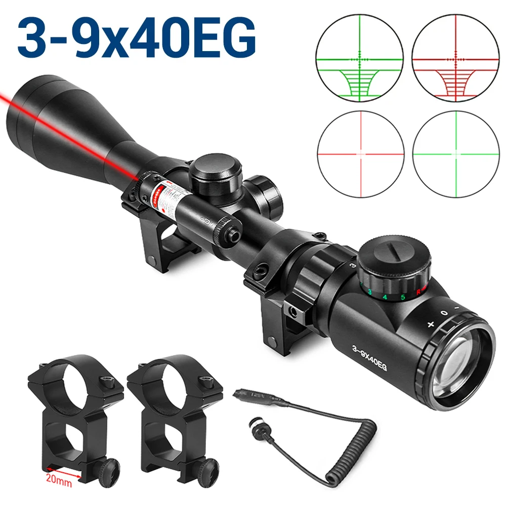 Mira telescópica táctica 3-9x40, combinación de láser rojo, rojo, verde, telescopio óptico iluminado Airsoft, alcance Mil-dot para carril de 11/20mm