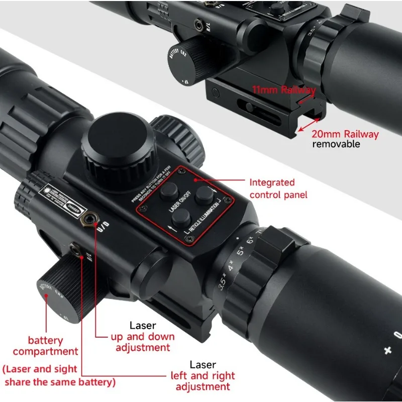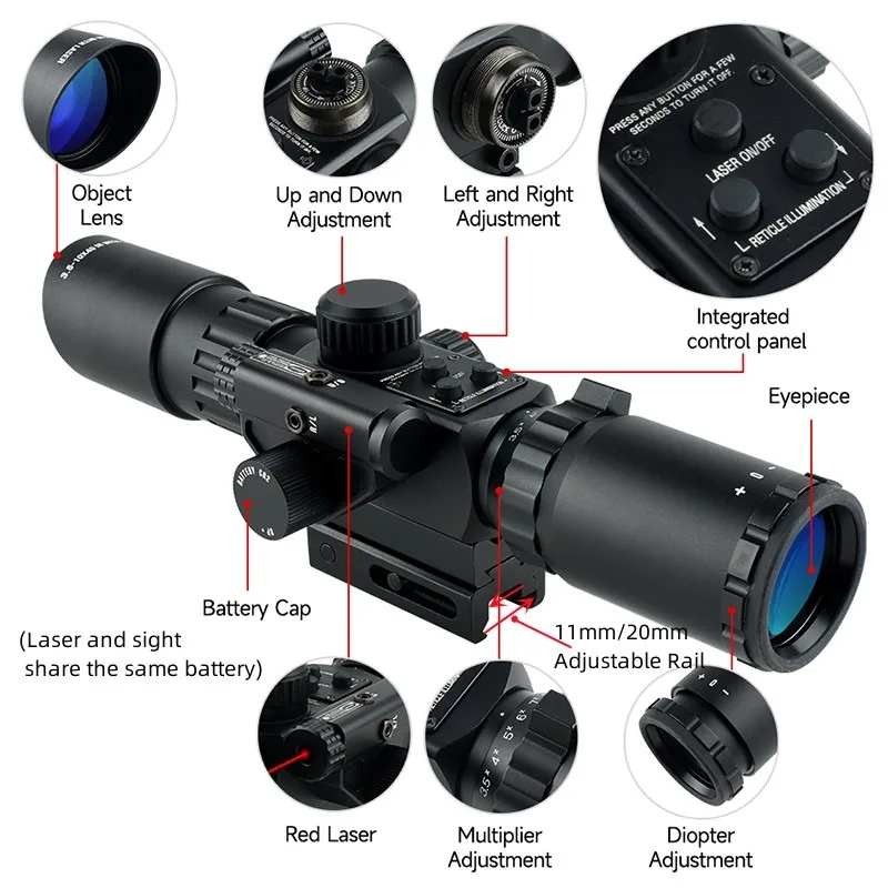 Campo de visión: 32,5 pies-8,9 pies@100 yardas Rango de movimiento: ± 30moa