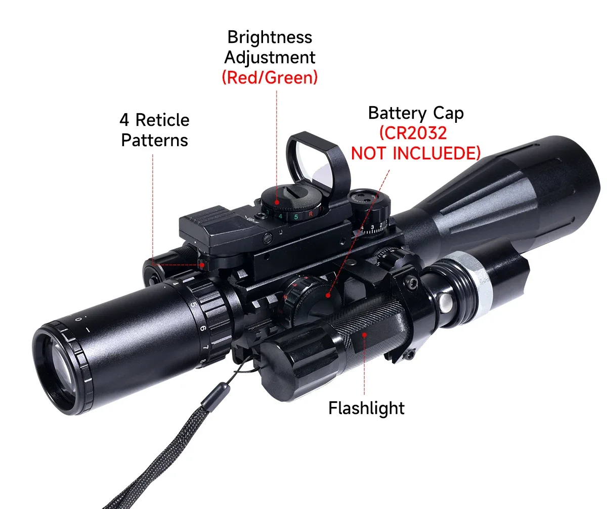 - El visor del rifle con montaje libre, ideal para el accesorio táctico de caza.