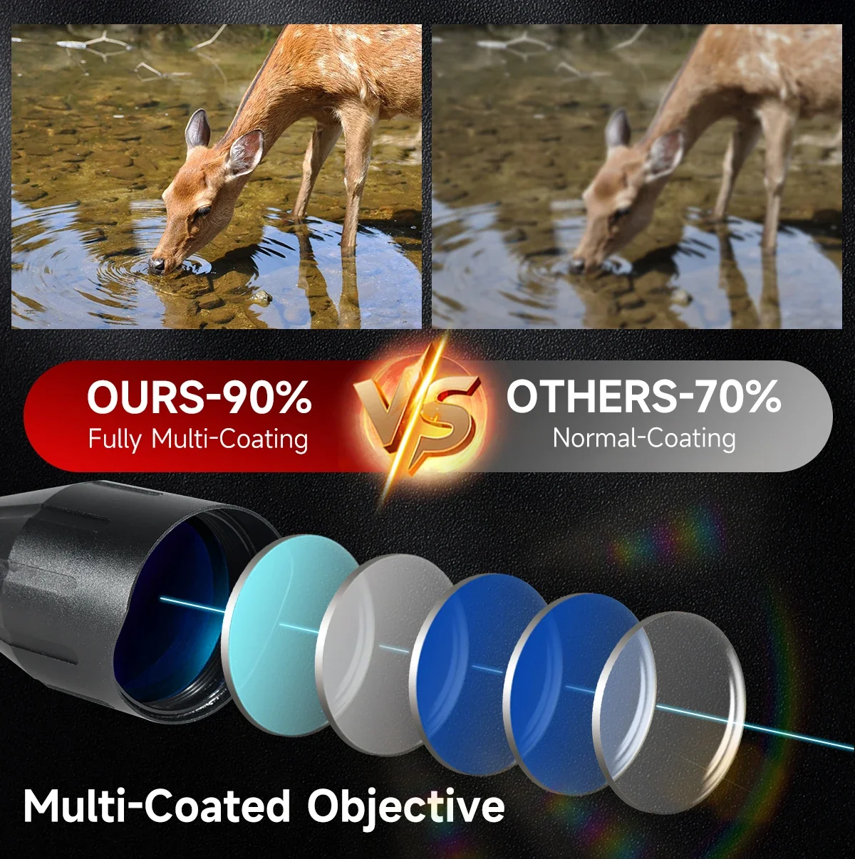 -HD con lentes totalmente multicapa proporciona vistas brillantes y claras para el usuario.