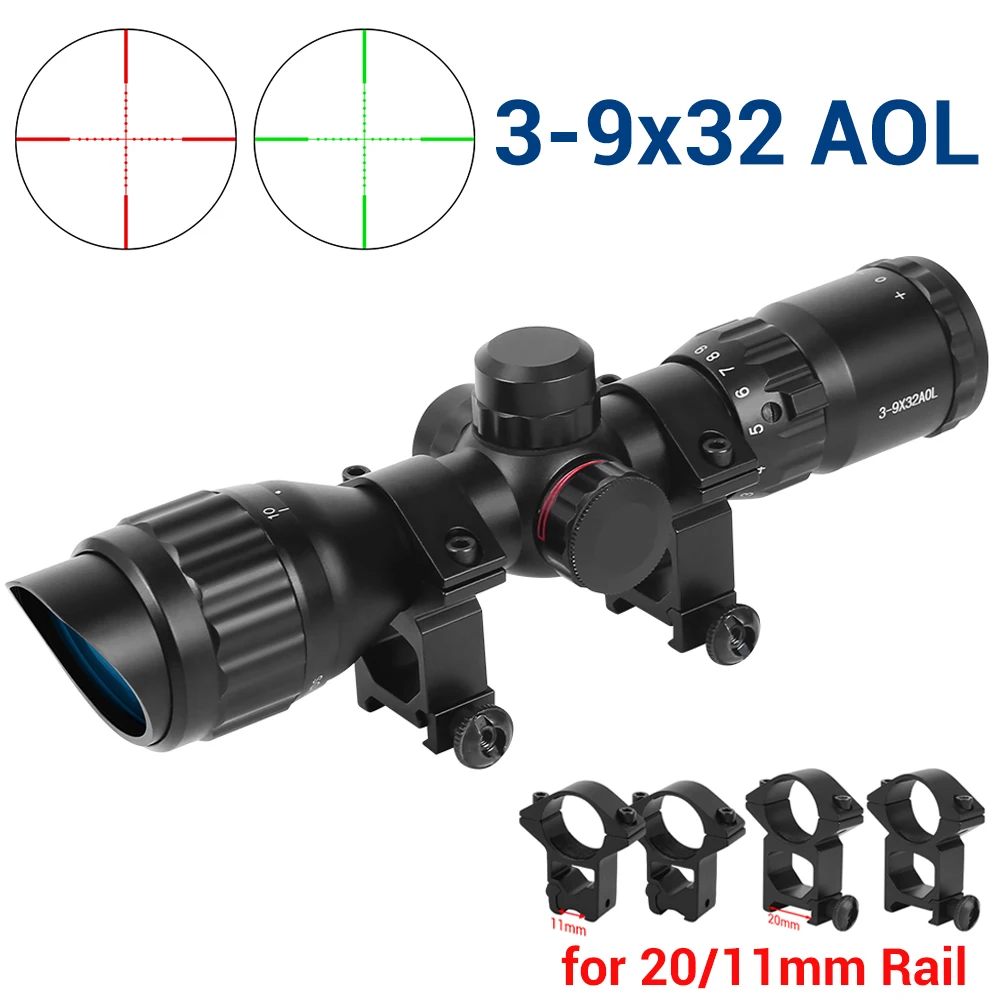 Mira telescópica táctica AOL 3-9x32, mira óptica, mira roja e iluminada verde, mira telescópica Mil-Dot para Rifles de caza