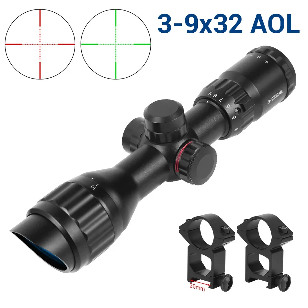 Mira telescópica táctica AOL 3-9x32, mira óptica, mira roja e iluminada verde, mira telescópica Mil-Dot para Rifles de caza