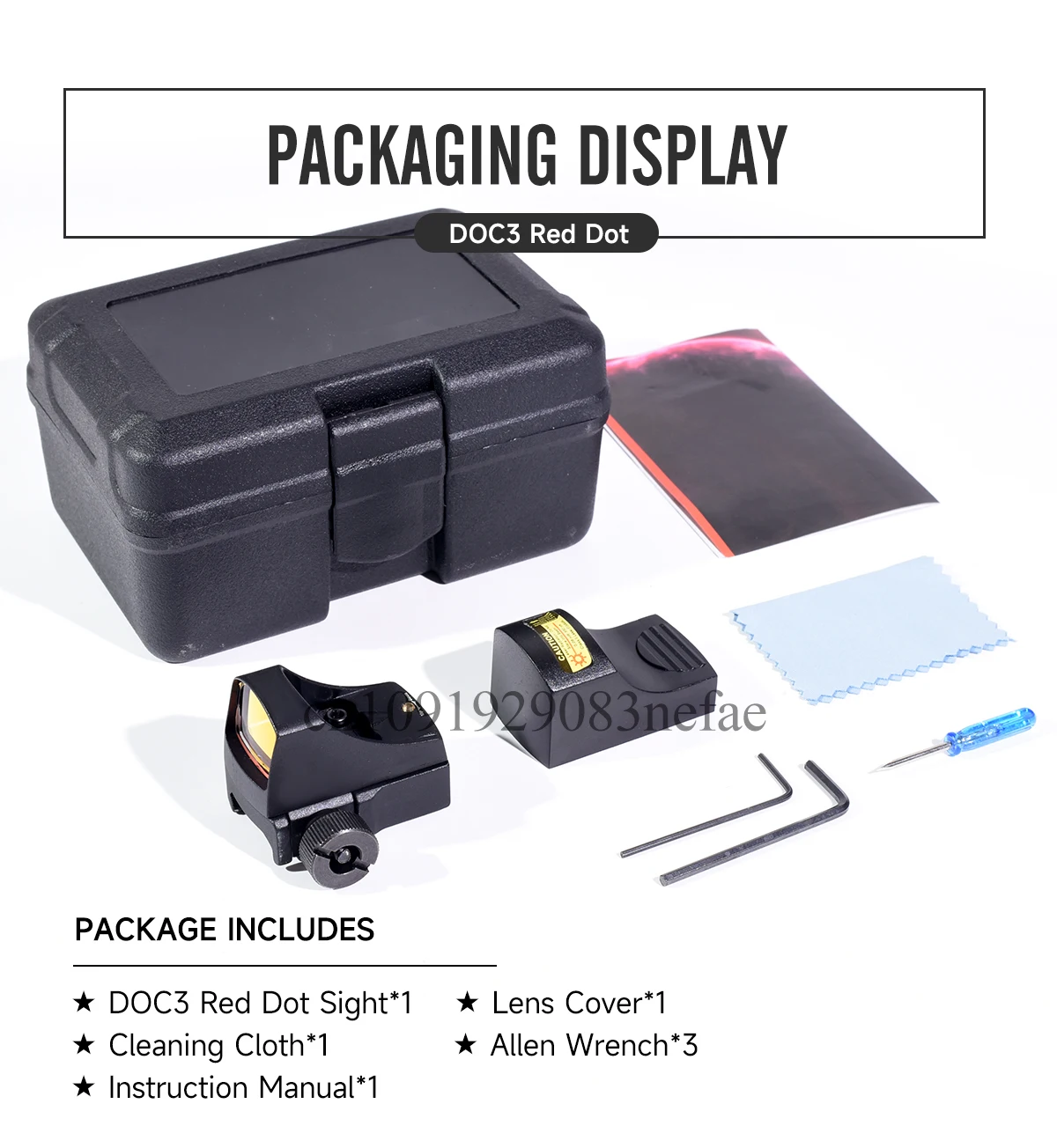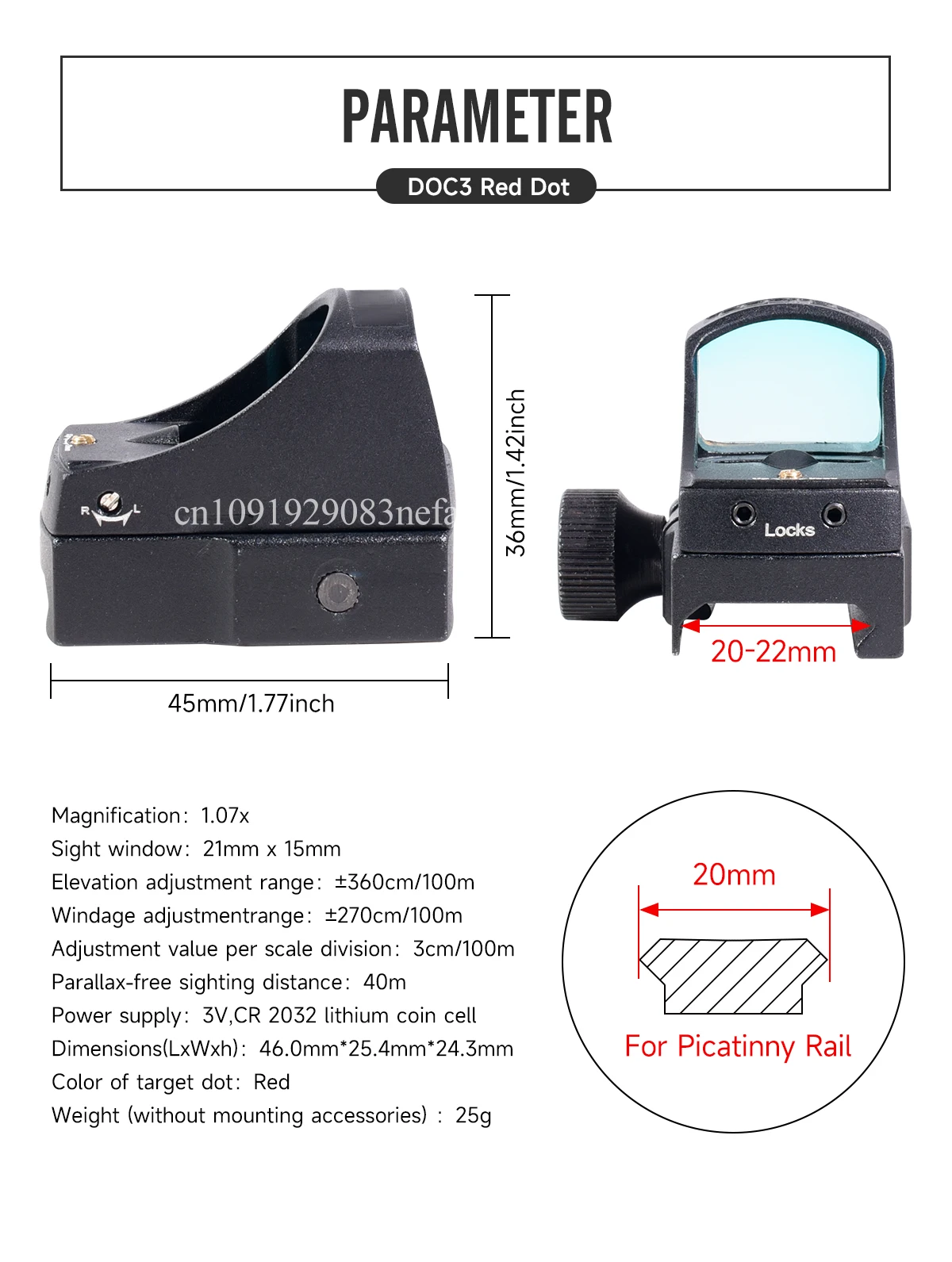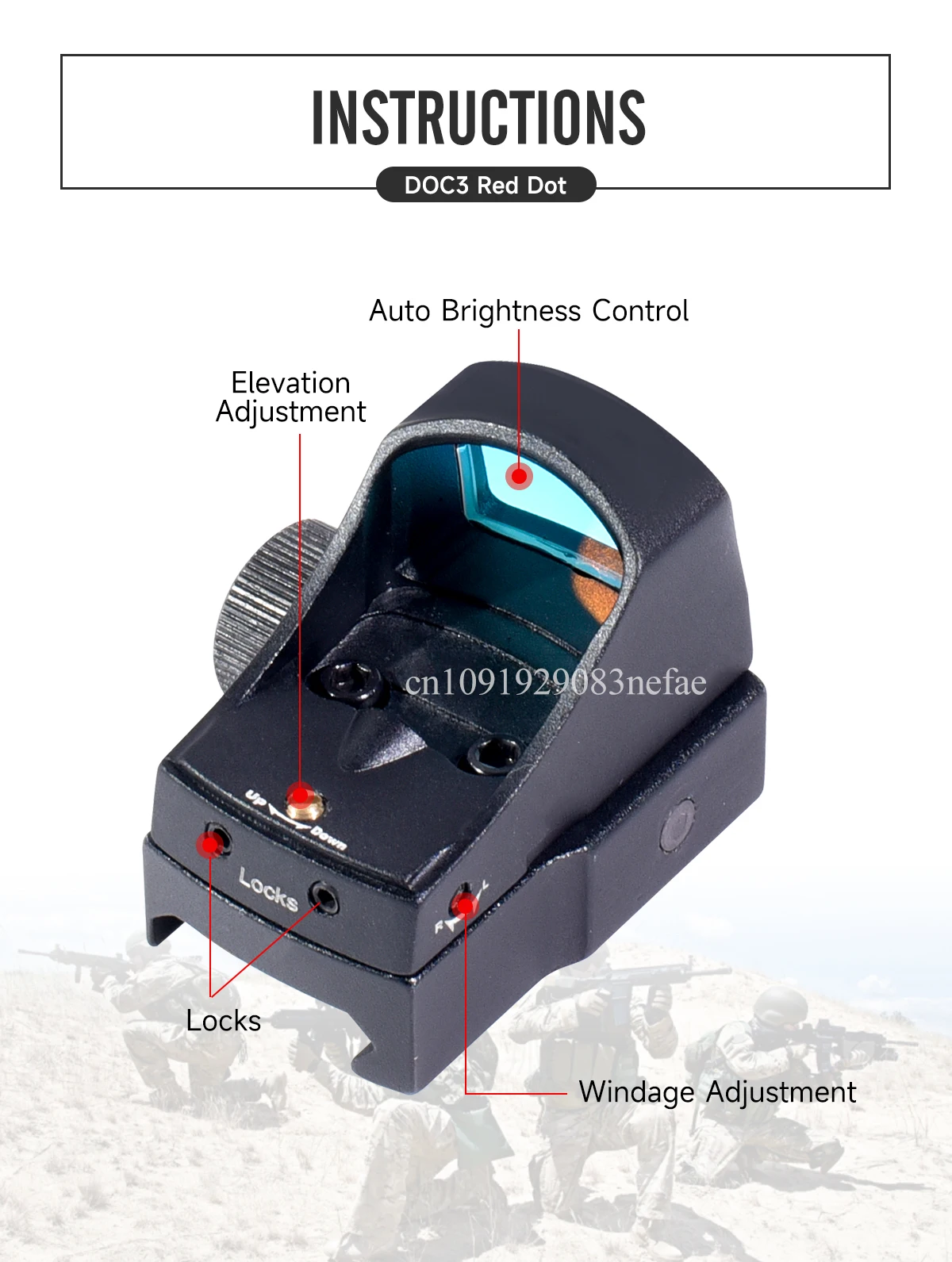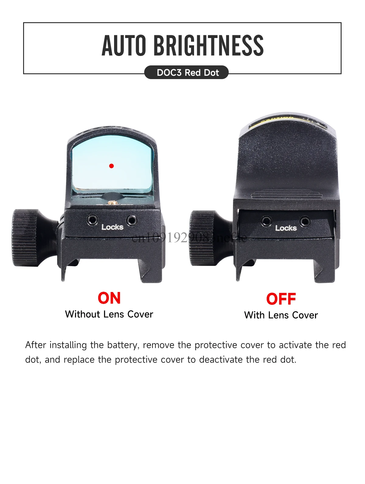 Mira telescópica táctica DOC III con punto rojo para caza, ajuste fotosensible automático iluminado para montaje en riel Picatinny de 20mm