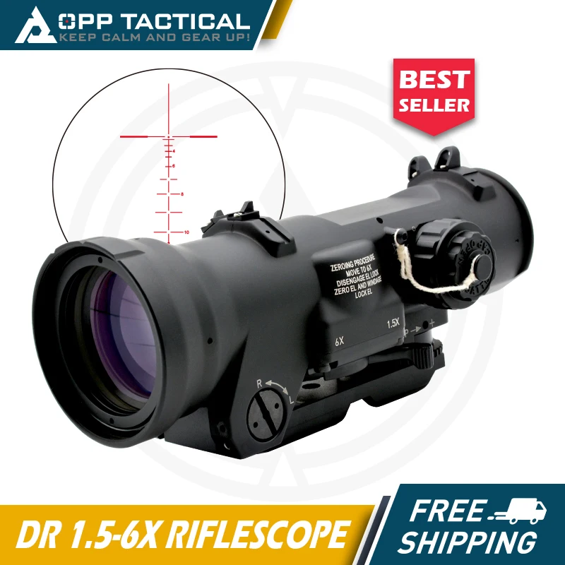 Mira telescópica táctica DR 1,5-6x, mira FIJA DE DOBLE campo de visión, iluminación roja, con marcas completas para Airsoft y caza
