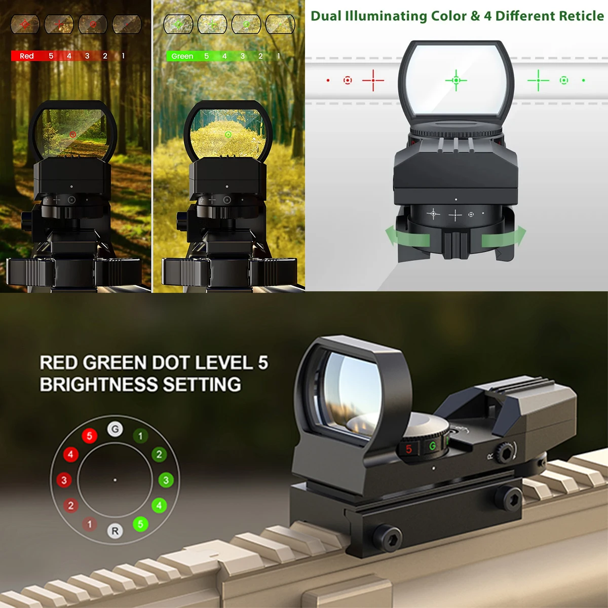 Mira telescópica táctica HD101 de 4 retículas, óptica de punto rojo y verde, mira telescópica para caza, aptas para rieles de 20mm, mira para armas Airsoft