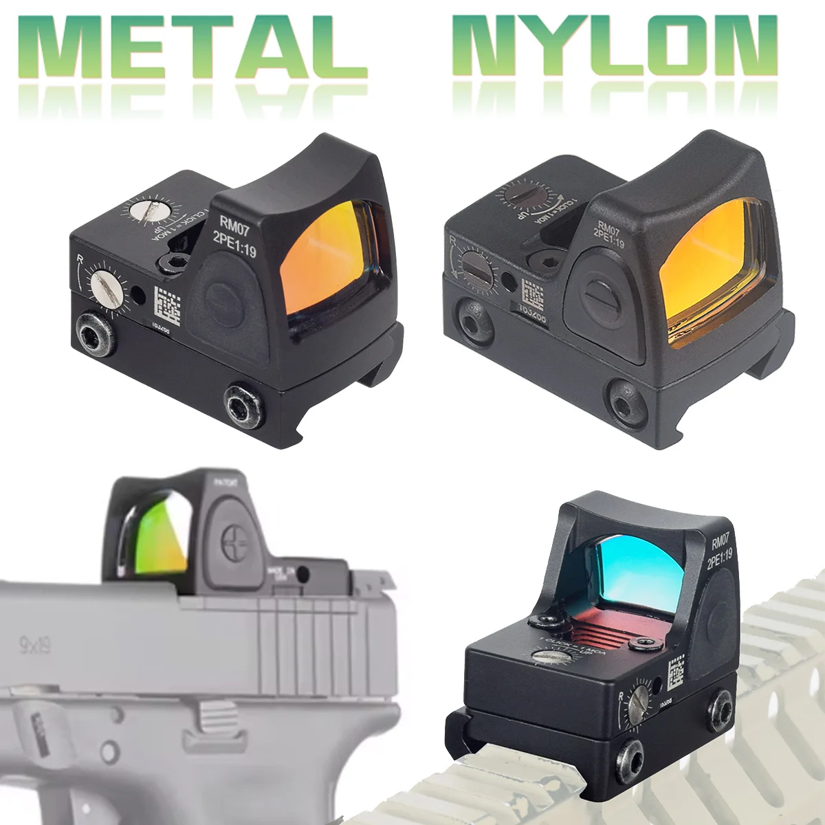 Mira telescópica táctica de METAL NYLON RM Red Dot compatible con G17 G19, Base de mira trasera, armas Airsoft, mira telescópica AR15 M4, riel de 20mm para caza
