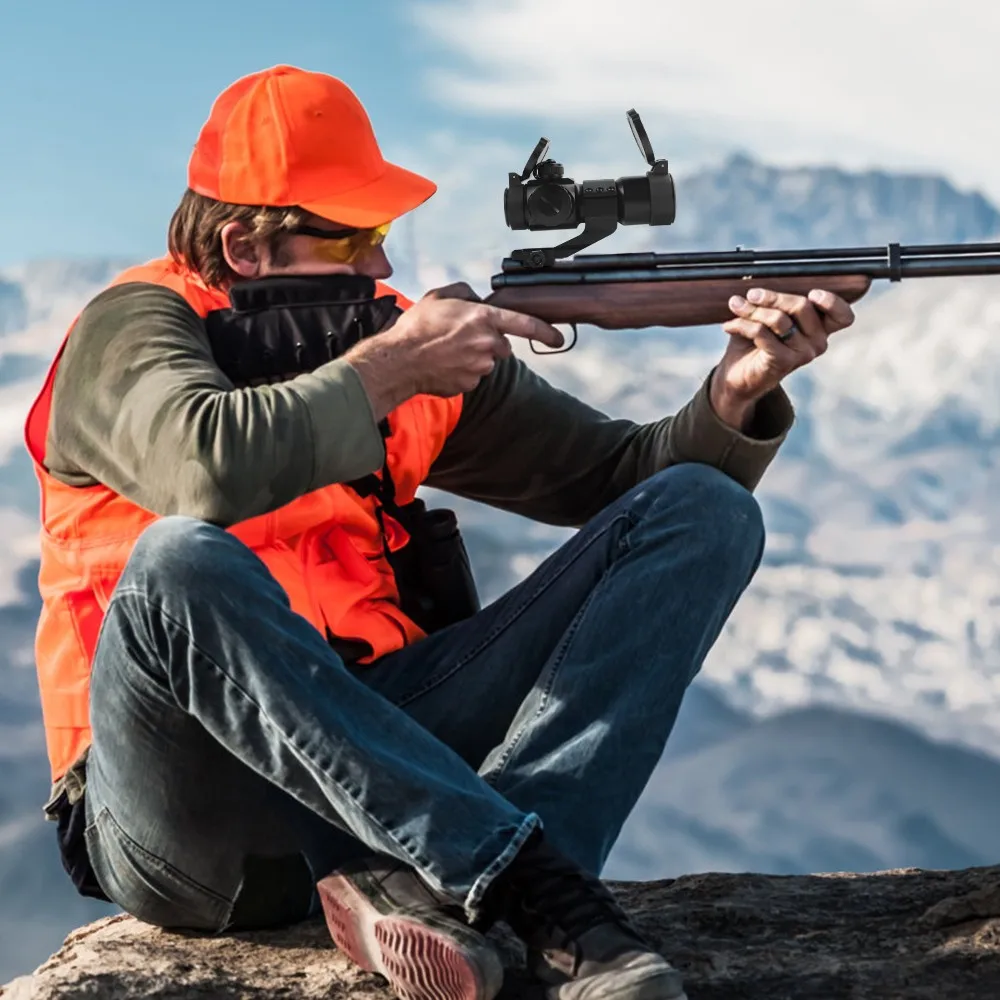 3. 【Punto rojo/verde y 5 ajustes de brillo】 El visor reflejo de Punto Rojo ofrece 4 retículas diferentes y 5 niveles de iluminación. Permite a los usuarios ver claramente el punto rojo/verde en cualquier condición de iluminación.