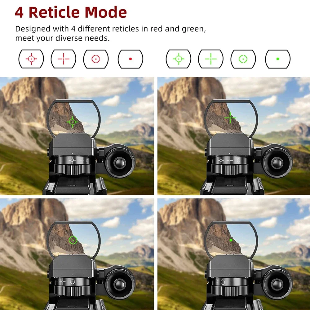 【Dual Illuminated Red & Green】Red dot sight with 4 reticle shapes and 5 brightness settings, provide various choices in different occasions, like sunny, cloudy day.