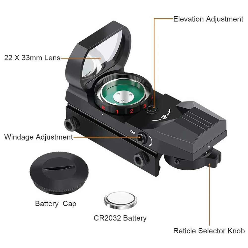 【CAMPO DE VISIÓN COMPLETO】 Lente réflex de 33mm con diseño sin cámara para un amplio campo de visión (15,8 m a 100m) es ideal para disparos rápidos en objetivos en movimiento desde distancias cortas a medias.