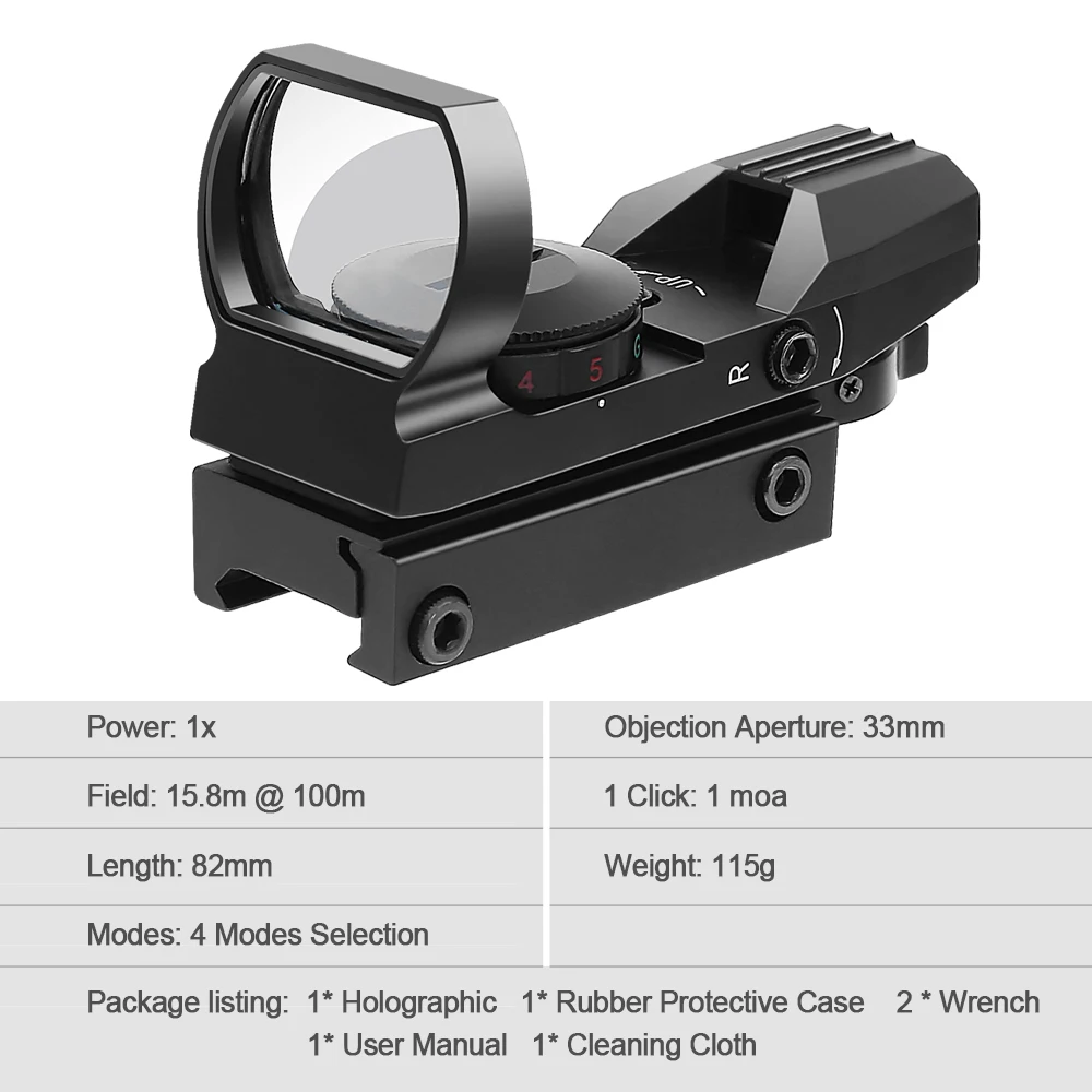 Mira telescópica táctica de punto rojo y verde, mira telescópica de cola de milano de 11mm/20mm, mira óptica de reflejo para pistola de Rifle de caza Airsoft