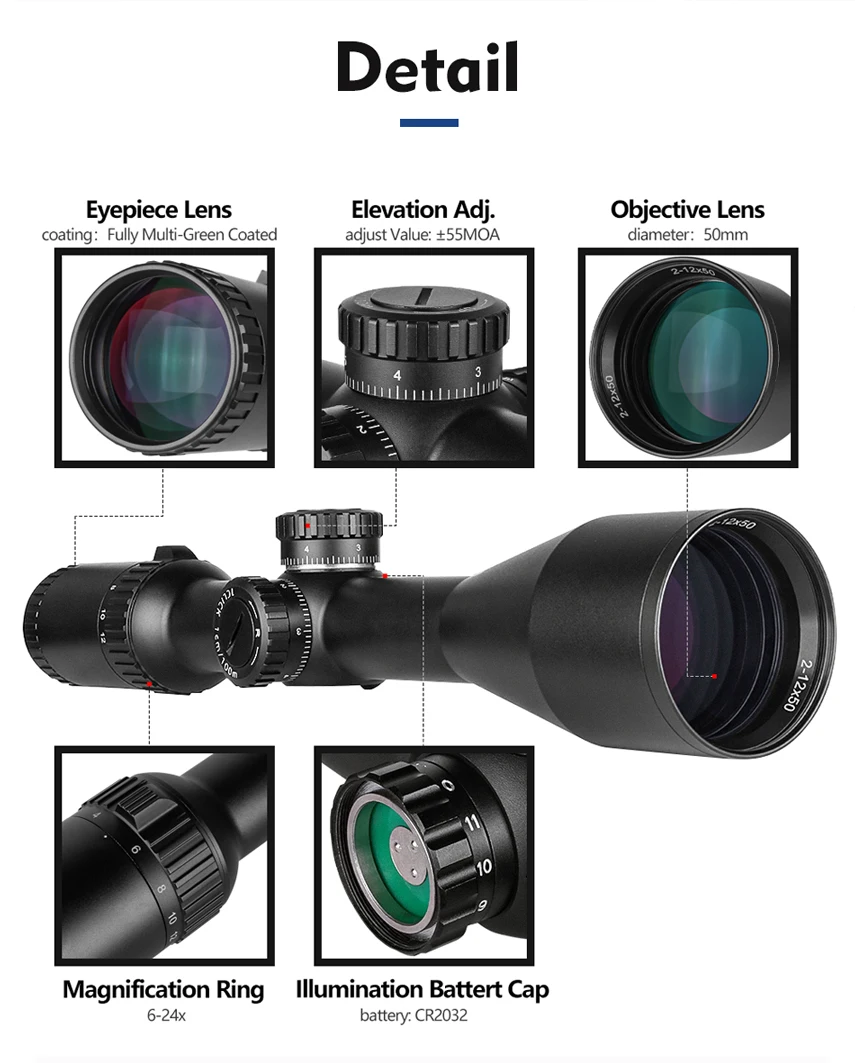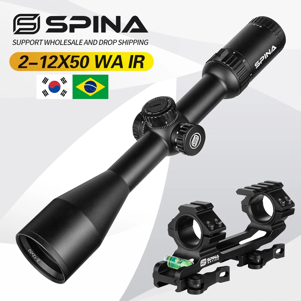 Mira telescópica táctica SPINA Optics HD 2-12x50 WA IR para Rifle de caza, mira óptica para Rifle Real