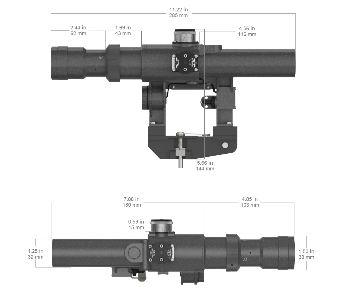 · Retícula grabada estilo SVD, con cubierta ocular para lentes oculares. Sistema de montaje lateral.