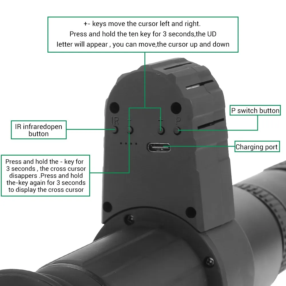 3.【 cambio de modo Dual entre día y noche 】 viene con un cursor cruzado, que se puede utilizar directamente sin un alcance. El cruce de la vista frontal y el cruce del dispositivo de visión nocturna se pueden cambiar libremente para satisfacer sus diferentes necesidades durante el día y la noche.
