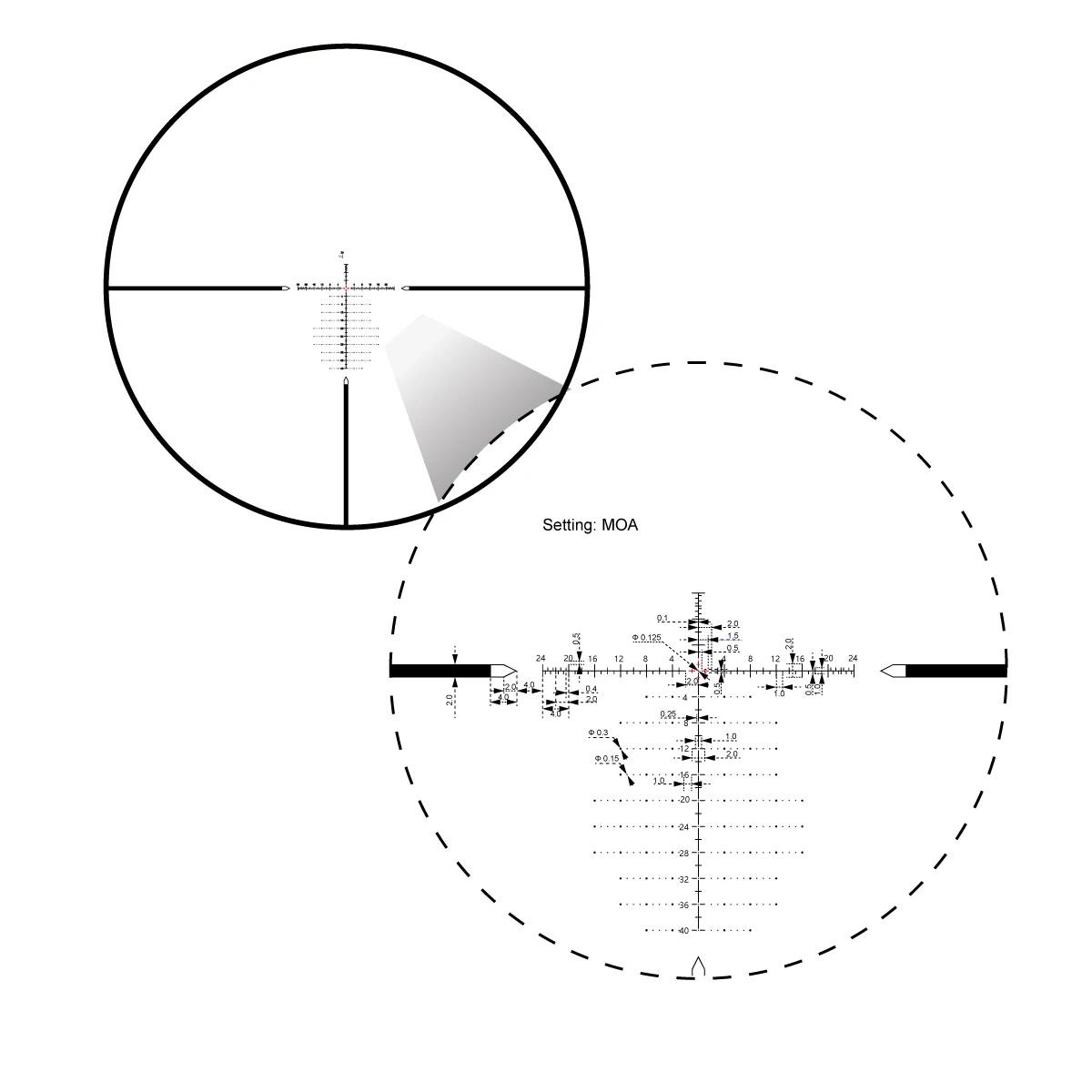 · Diseño de retícula de puntos FFP VTA-4 MOA para disparos de rifle precisos (PRS), punto central de 0,125 MOA