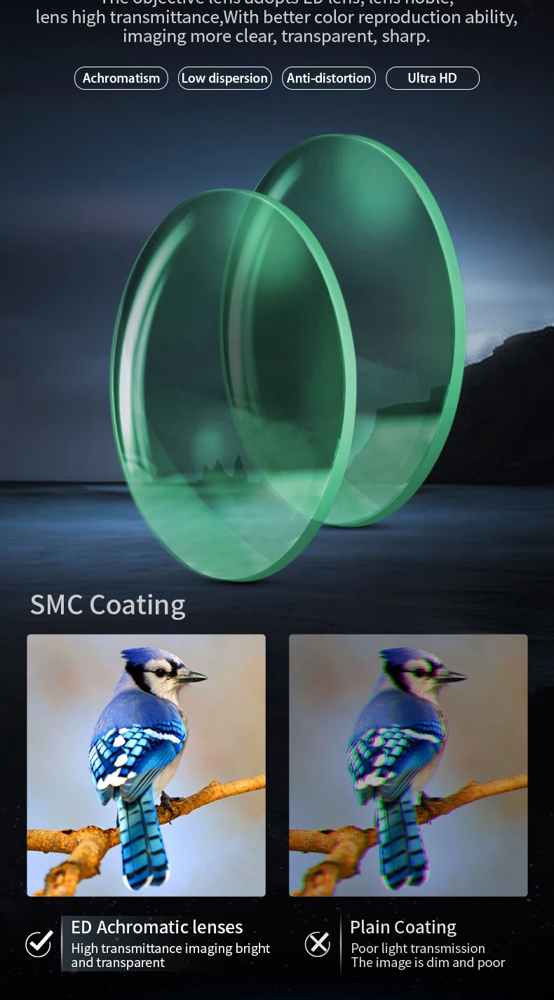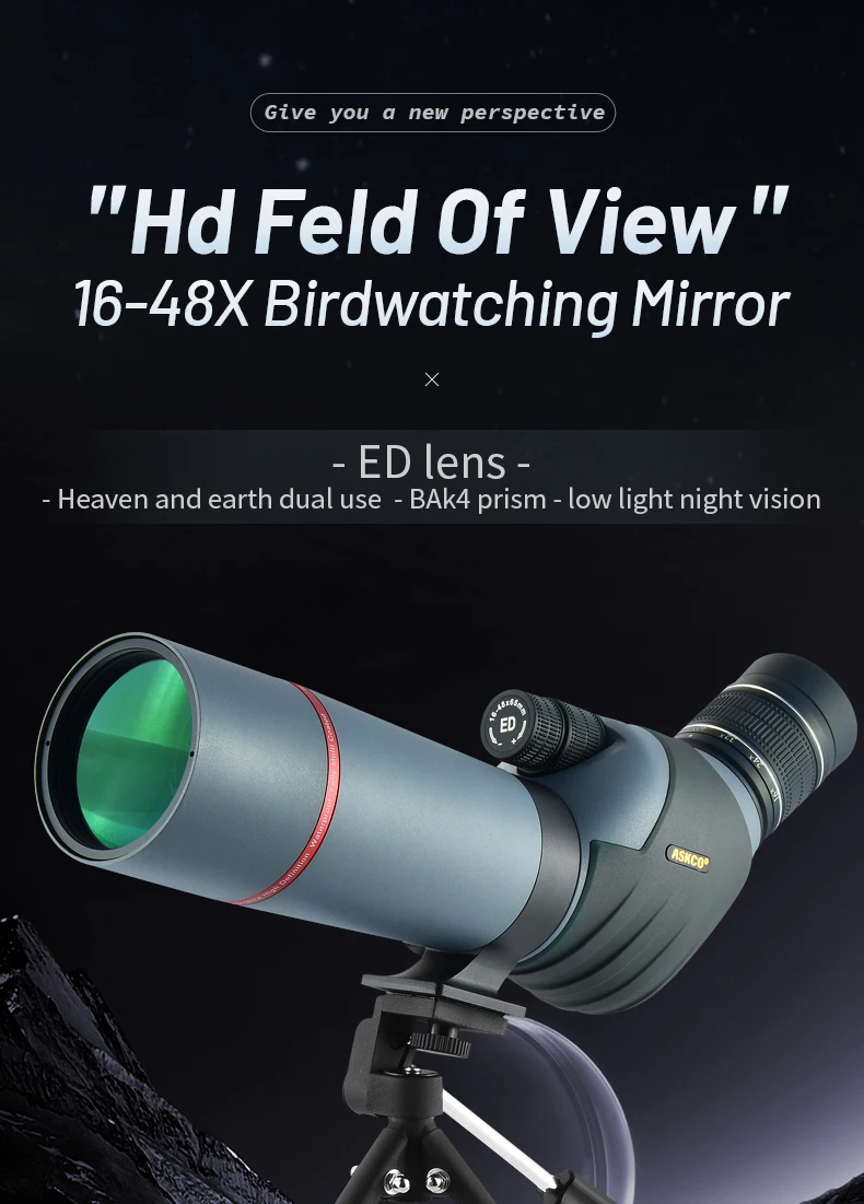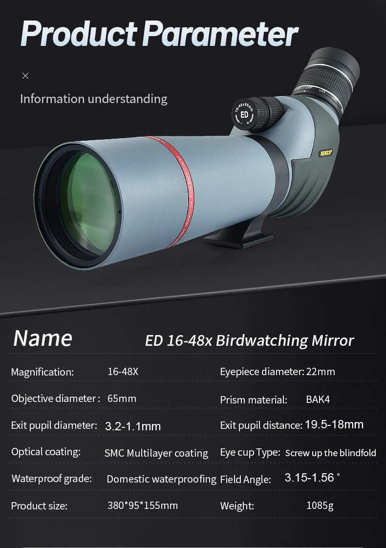 Miras de detección ED mejoradas con trípode, bolsa de transporte, BAK4, alta definición, impermeable, para observación de aves, 16-48X65