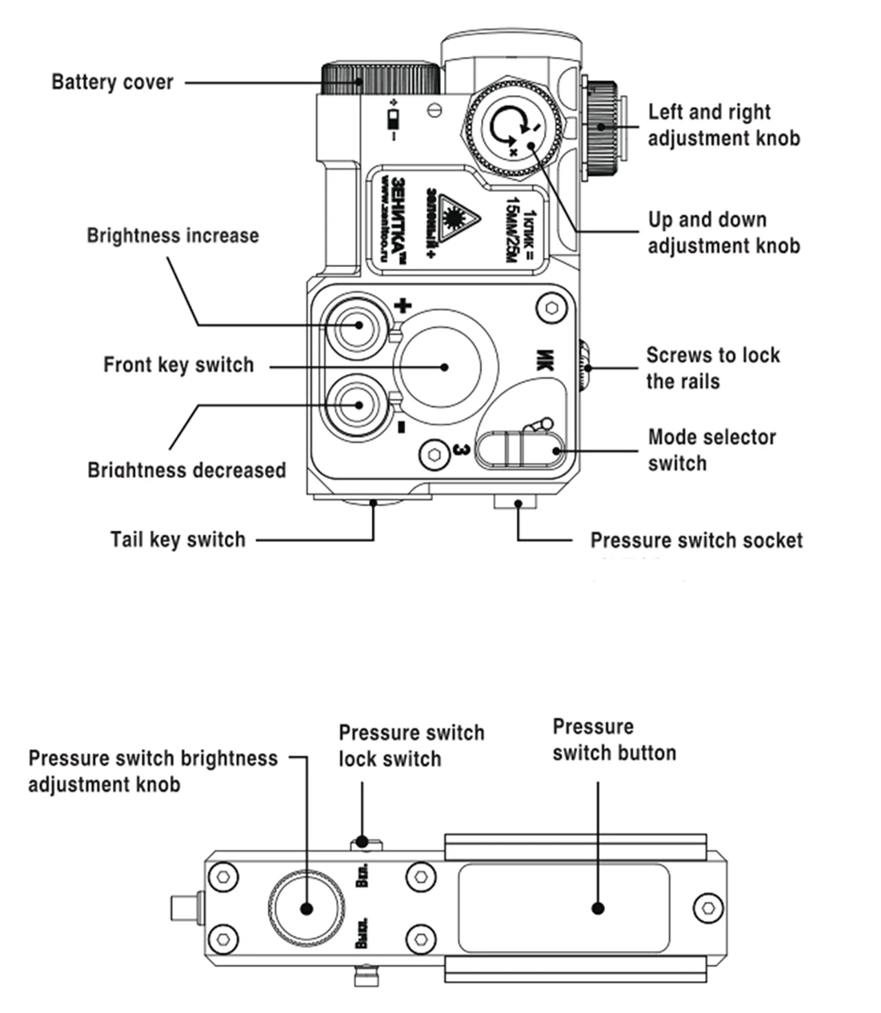 This productis used to point targets when observing , inspecting and watching small arms shooting at night. This product is a small optical mechanical device that forms laser radiation flux. This product is installed on rails. The KV-D2 switch (in the kit)can be installed on rails.