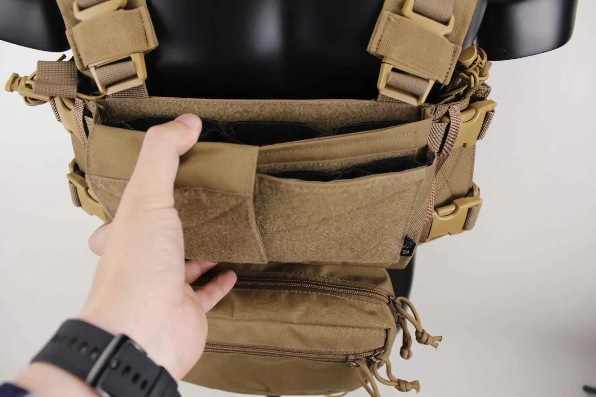 La configuración predeterminada viene con paquetes laterales en ambos lados.En pruebas reales, cada paquete lateral puede amplificar el espacio de la estación de radio o dos 5,56 Mags.