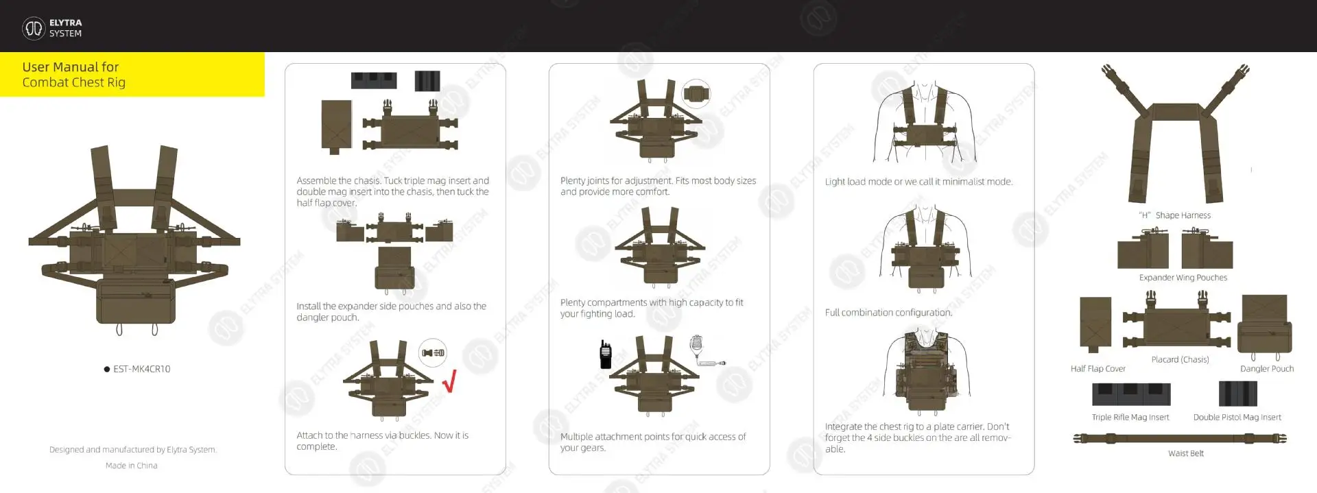 Equipado con cremalleras YKK y cierres Dura-Flex, el cierre masculino Mohabi se puede fijar directamente al panel frontal del chaleco táctico con un cierre femenino.Tanto los sujetadores hembra Mohabi como ITW son compatibles.