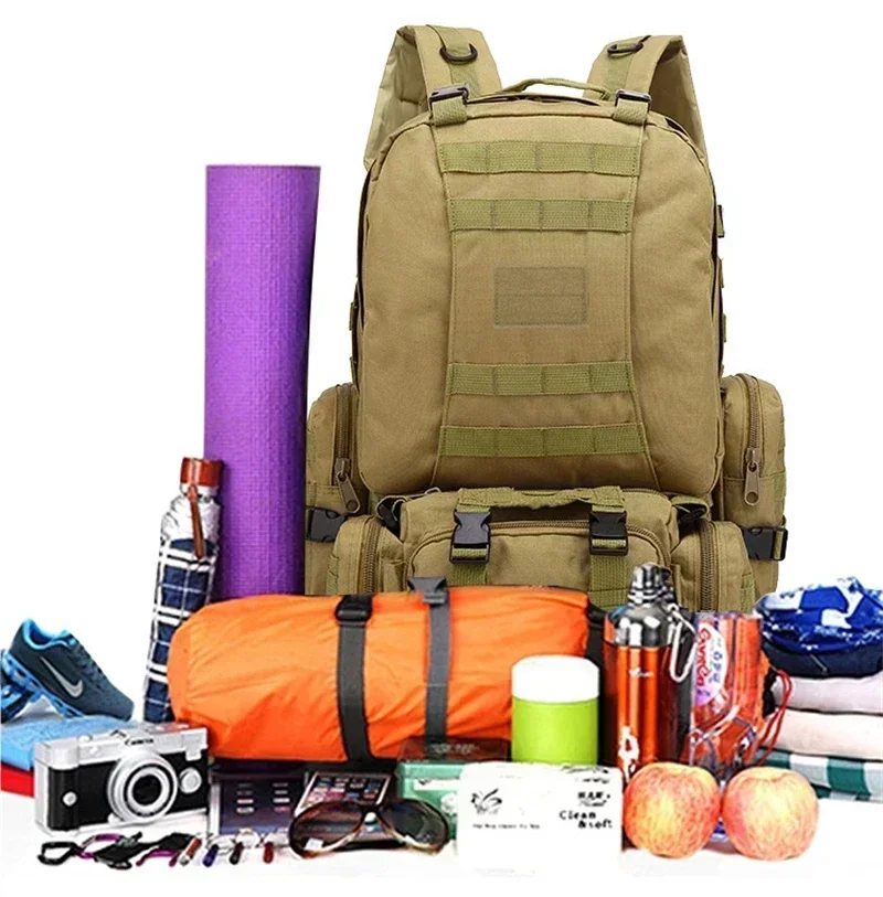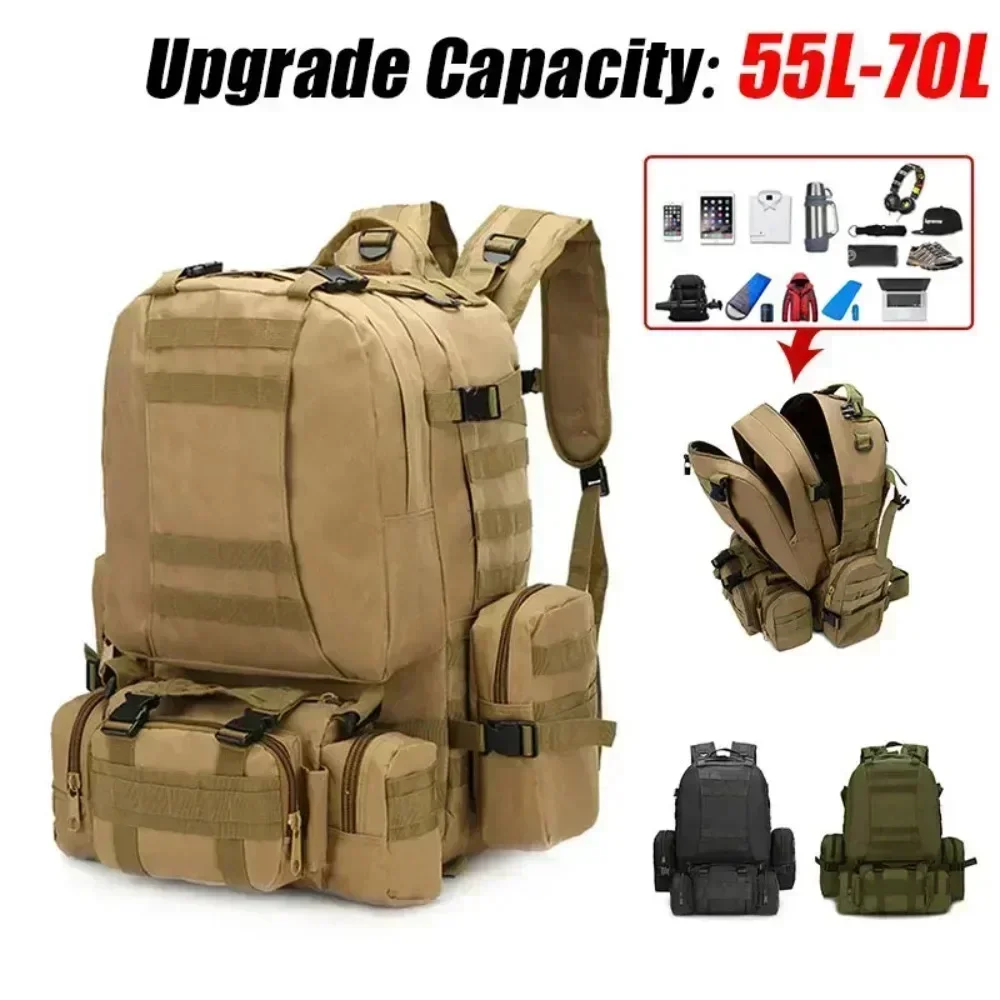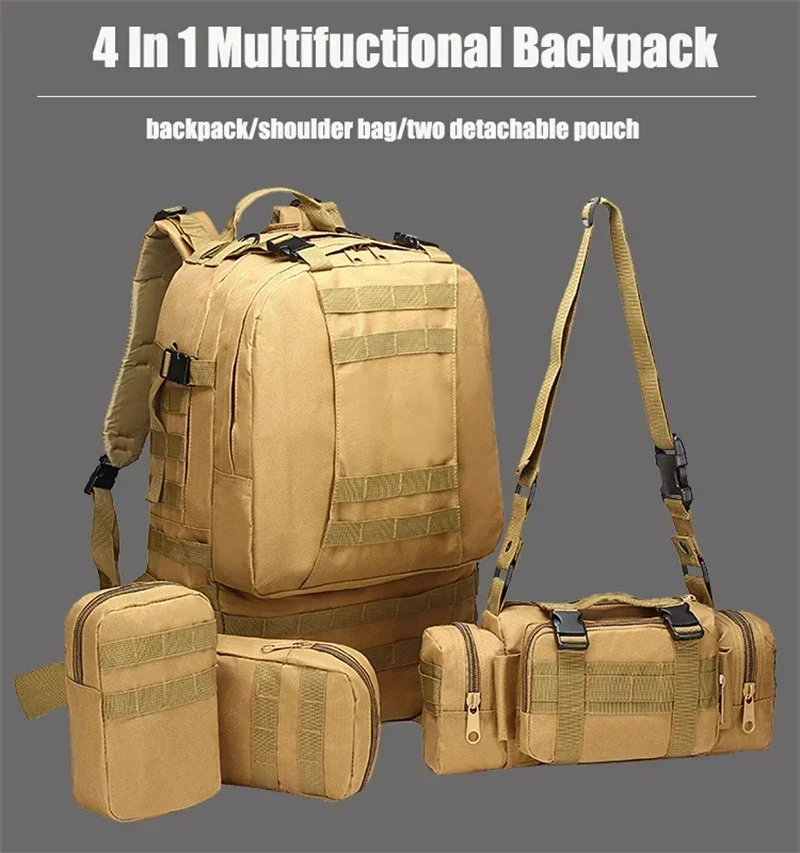 Mochila 4 en 1, Mochila táctica de 55L, Mochila para deportes al aire libre, Mochila para acampar, senderismo, viajes, escalada