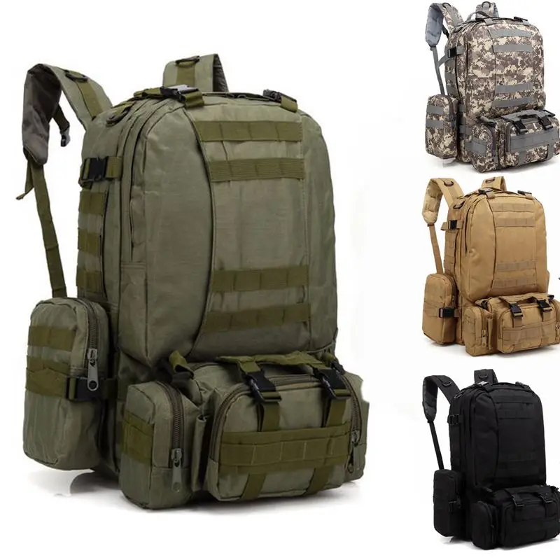 Mochila de 55L, mochila cuatro en uno, mochila para senderismo y acampada, bolsa para deportes al aire libre Molle, bolsa de viaje impermeable