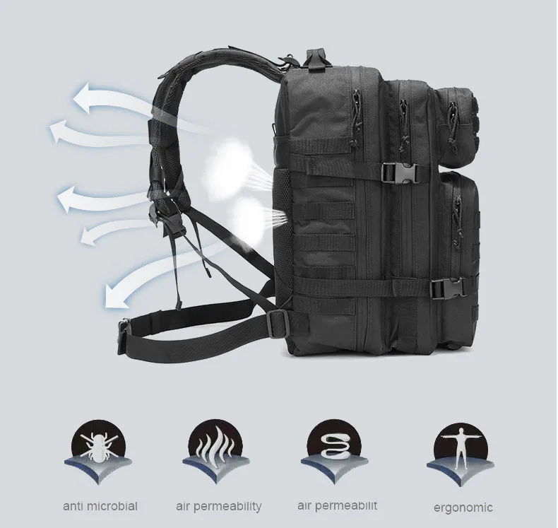 Mochila de acampada para deportes al aire libre para hombre, bolsa de senderismo y montañismo, gran capacidad, 45l, 3P