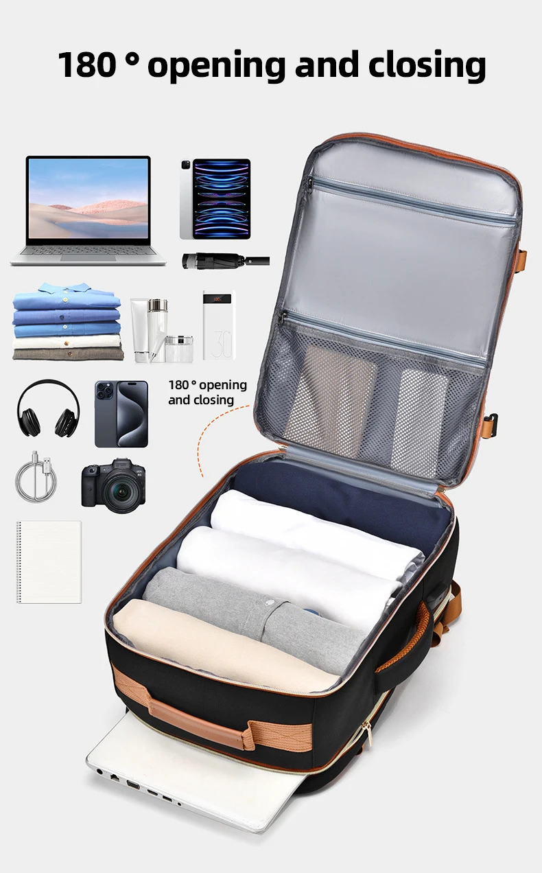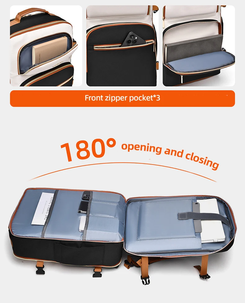 4.La bolsa con cremallera está oculta en la parte posterior, que puede equiparse con la función de maleta y es conveniente para viajar.