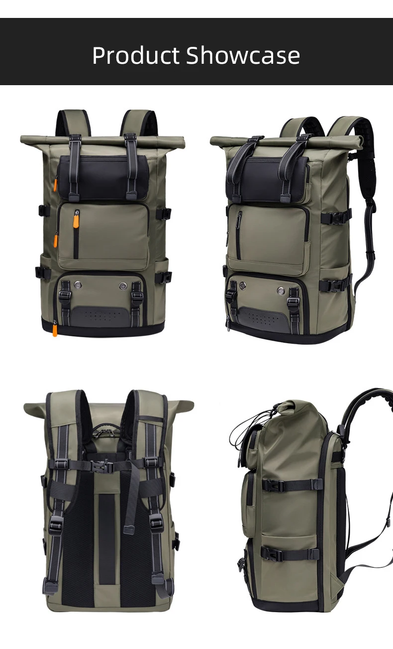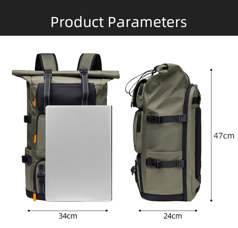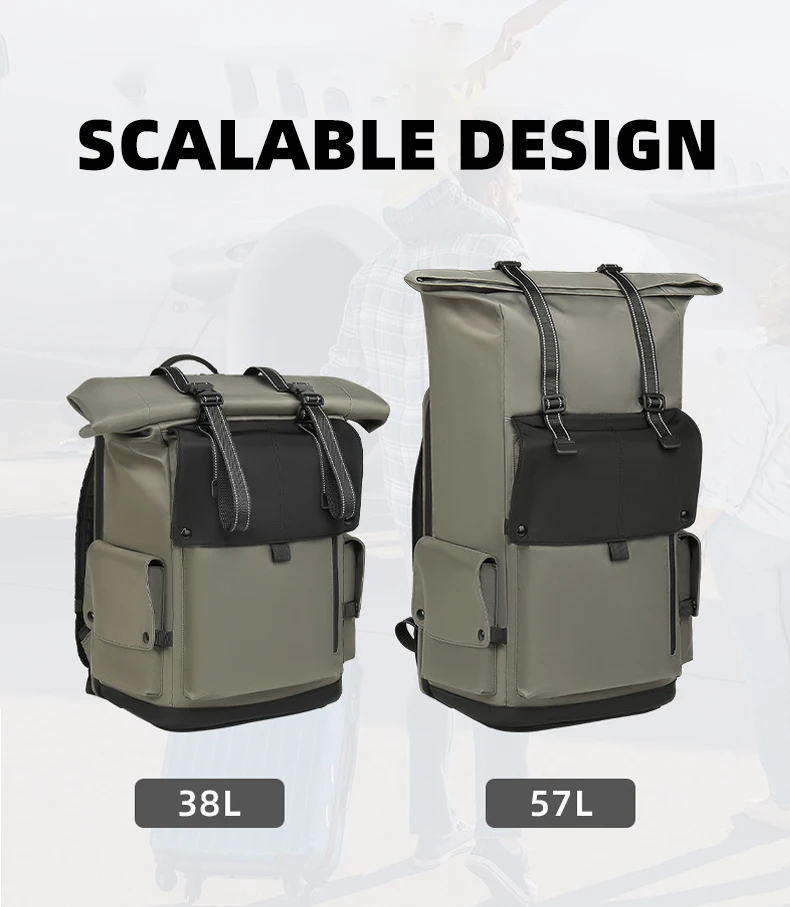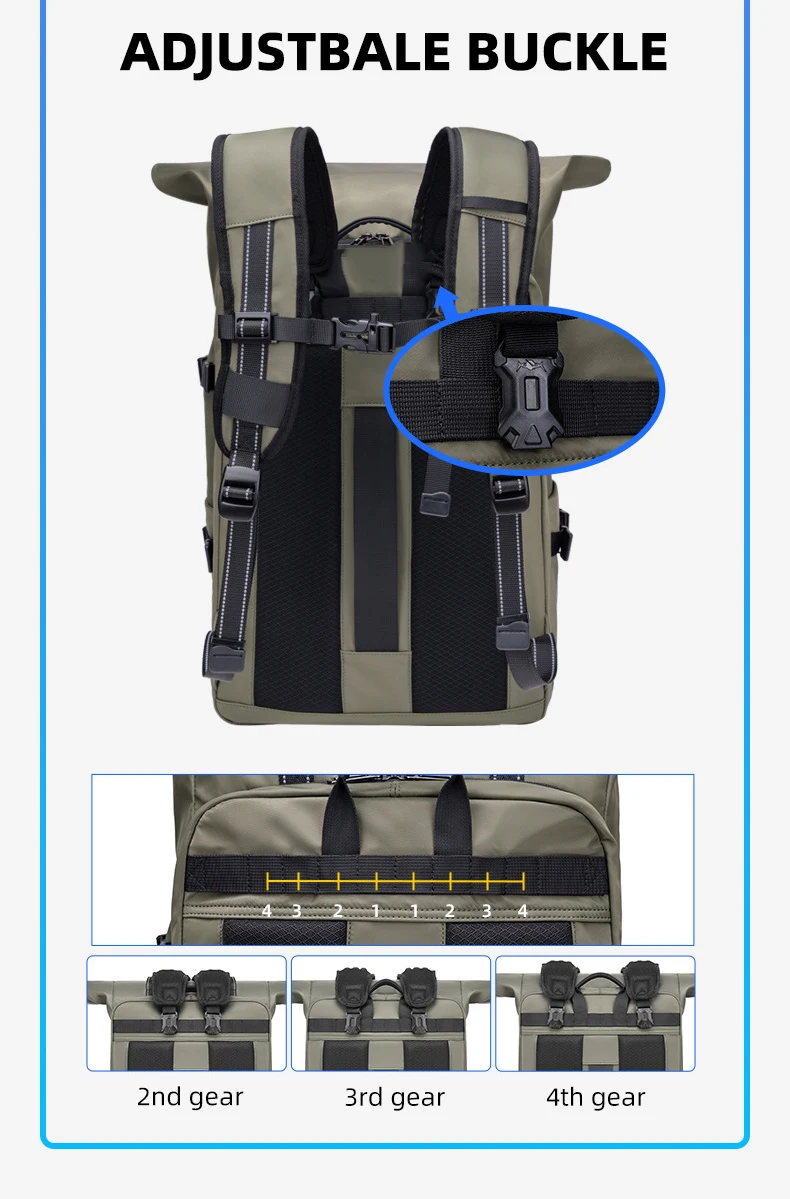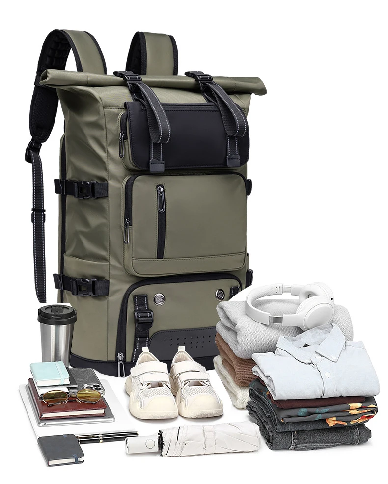 4.Estructura: compartimento independiente para computadora, bolsa de almacenamiento frontal, compartimento inferior para zapatos, bolsa de separación húmeda y seca, bolsa de almacenamiento lateral