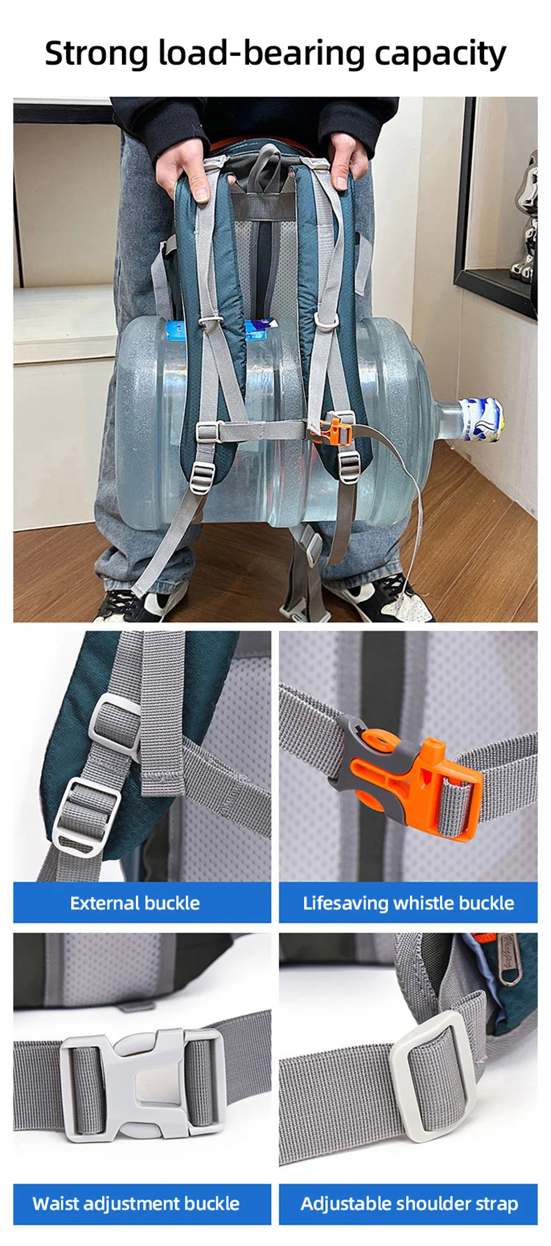 4.Sistema de espalda transpirable, sin sudor en la espalda durante mucho tiempo.