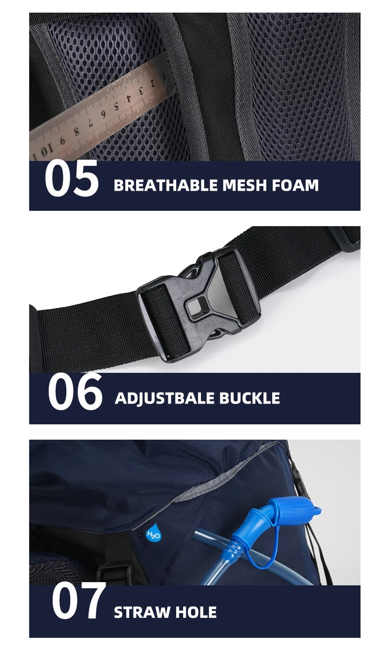 2.Mochila de hidratación con salida de tubería de agua y clip de fijación de tubería de agua en la correa para el hombro.